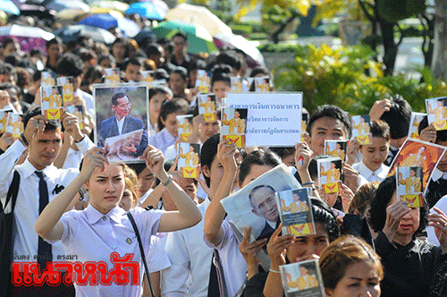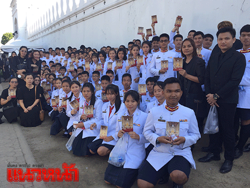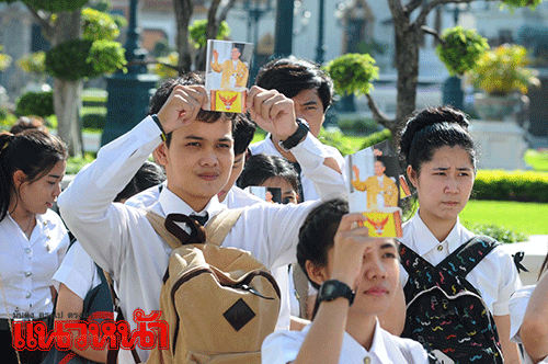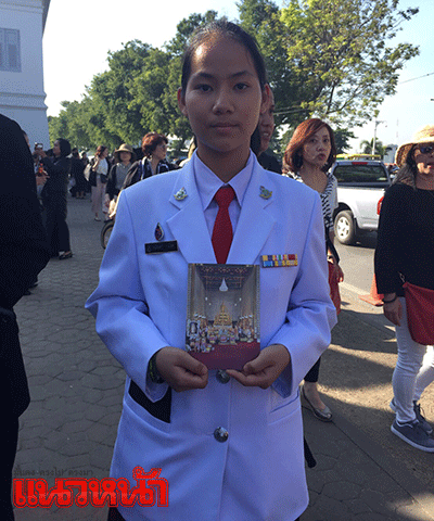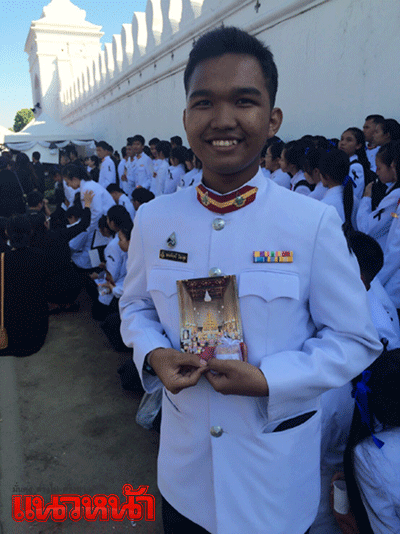 ส่วน นายณรงค์ฤทธิ์ ปิยะสุข อายุ 16 ปี นักเรียนชั้น ม.4 โรงเรียนเฉลิมพระเกียรติสมเด็จพระศรีนครินทราบรมราชชนนี กล่าวว่า ตอนมาถึงบริเวณสนามหลวงเวลาประมาณตี 4 รู้สึกตกใจที่เห็นผู้คนมากมายมาเข้าแถวรออยู่ก่อนแล้ว แต่ใจหนึ่งก็เข้าใจดีเพราะได้เห็นในเพลงสรรเสริญพระบารมีที่เปิดในโรงหนังที่คนเรือนหมื่นเรือนแสนพร้อมใจกันมาด้วยความรักต่อในหลวงรัชกาลที่ 9 วันนี้ถ้าทางโรงเรียนไม่จัดพามาก็คงไม่มีโอกาส เพราะหากมาเองติดปัญหาหลายอย่าง ถึงแม้ว่าจะเกิดมาไม่ทันที่พระองค์ท่านเสด็จทรงงานทั่วพื้นที่ แต่ก็ติดตามจากสื่อและเอกสารต่างๆ รู้สึกว่าท่านมีพระปรีชาสามารถมาก ทั้งวิทยาศาสตร์ ดนตรี หรือกีฬา ครั้งหนึ่งเคยอ่านเจอว่าเสด็จไปทรงงานบนดอยแล้วเป็นหวัด แต่ก็ทรงไม่ท้อยังคงทำงานเพื่อแก้ปัญหาให้ประชาชนจนเสร็จ เราเห็นแล้วก็เหนื่อยแทนท่าน ส่วนตัวจะตั้งใจนำคำสอนของพระองค์มาใช้เป็นแนวทางในการดำเนินชีวิตตั้งใจเรียน ทำหน้าที่ของตัวเองให้ดี ช่วยเหลือสังคม และพัฒนาชุมชนหากมีโอกาส