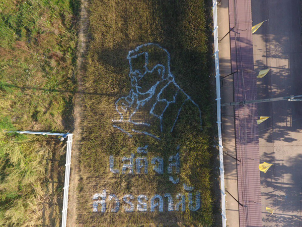 โดยวิทยาลัยสันตพล เริ่มต้นดำนาปลูกข้าวไรซ์เบอรี่แปลงนาสาธิต ตั้งแต่วันที 25 สิงหาคม ที่ผ่านมา บำรุงดูแลรักษาด้วยวิธีการอินทรีย์ กระทั่งข้าวออกรวงสวยงาม โตเต็มที่ ครบ 106 วัน ในวันนี้ จึงพร้อมใจกันเก็บเกี่ยว เป็นพระบรมรูปพระบาทสมเด็จพระปรมินทรมหาภูมิพลอดุลยเดชทรงงาน ต่อด้วยอักษรคำว่า “เสด็จสู่สวรรคาลัย” และเลข “เก้าไทย” เพื่อร่วมสำนึกในพระมาหกรุณาธิคุณพระองค์ท่าน ที่มีต่อเกษตรกรไทยทั้งประเทศ
