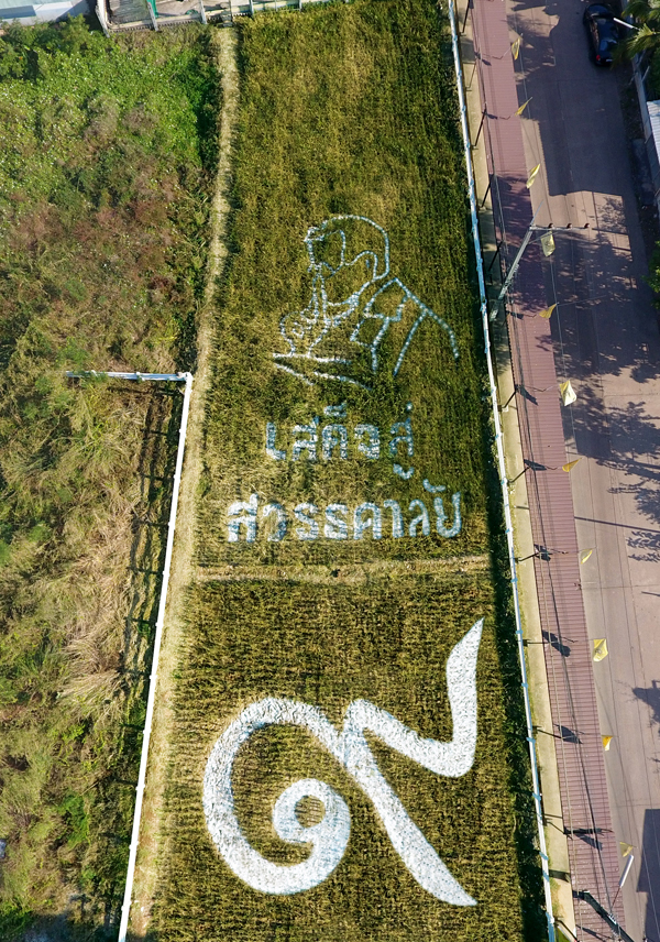 ‘วิทยาลัยสันตพล’เทิดทูนศาสตร์พระราชา ร่วมเกี่ยวข้าวเป็นรูป’ในหลวงร.9’