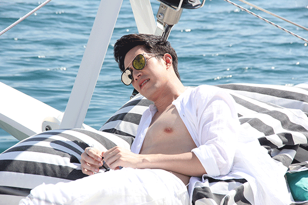 ฉากนี้ ถ่ายทำกันที่ ท่าเทียบเรือเขาหมาจอ อ.สัตหีบ โดย ผู้กำกับ “ตั้ม-บรรเจิด พุทธโศภิษฐ์” รีเควสเรือยอร์ชลำหรู พร้อมสาวๆ ฝรั่งหุ่นเซ็กซี่ในชุดบิกินี่มาเข้าฉากเพียบ ด้านหนุ่มซันถึงกับฟินออกนอกหน้า ก่อนจะขึ้นไปถอดเสื้อนอนอาบแดดโชว์ความอมชมพู อุ๊ปส์!!! ก้าวขึ้นเรือปุ๊บ ซันโชว์ลีลานัวเนียกับบรรดาสาวๆในชุดบิกินี่ที่พากันเต้นรายล้อมซันจนเลือกไม่ถูก ด้านซันก็เล่นได้พลิ้วถูกใจผู้กำกับ เรียกว่าดูเพลินจนแทบลืมสั่งคัทกันเลย อิอิ จากนั้น นางแบบคนหนึ่งก็เกิดเกเรไม่ยอมถอดเสื้อคลุมออก สาวแตงโมในฐานะผู้ดูแลการถ่ายทำ ปรากฎตัวในชุดซีทรูโชว์เนินอกเบาๆ แต่ก็ทำเอาหนุ่มๆในกองใจหวิวจนลืมอากาศร้อนเป็นปลิดทิ้ง แต่ความวัวไม่ทันหาย ความควายก็เข้ามาแทรก ความกะล่อนของหนุ่มซัน แฟนสาวนอกวงการเลยบุกมาตบนางแบบคู่ขาซะเละเป็นโจ๊ก ด้านซันพยายามจะห้ามเลยโดนลูกหลงทั้งตบ ทั้งกัดจนอ่วมไม่แพ้กัน แถมยังถูกแฉคบซ้อน เกาะกระแสเพื่อหวังดังไปอีก งานนี้ แตงโมสุดเอือมวิ่งเข้ามาล็อคคอสาวขาวีนออกไป ก่อนจะทิ้งสายตาต่อว่าซันแบบสวยๆ ไม่รู้ว่าเล่นตามบทหรือหมั่นไส้ที่เห็นซันฟินจนออกหน้ากันแน่ งานนี้ ซันจะโดนสาวต้นหอมตามเช็คบิลมั๊ยเนี่ย!!! ติดตามฉากนี้ได้ในวันจันทร์ ที่ 5 มิ.ย. เวลา 20.30 น. ทางช่อง 8 กดเลข 27