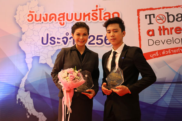 ‘เบิ้ล ปทุมราช’ปลื้มรับโล่พรีเซ็นเตอร์วันงดสูบบุหรี่โลก
