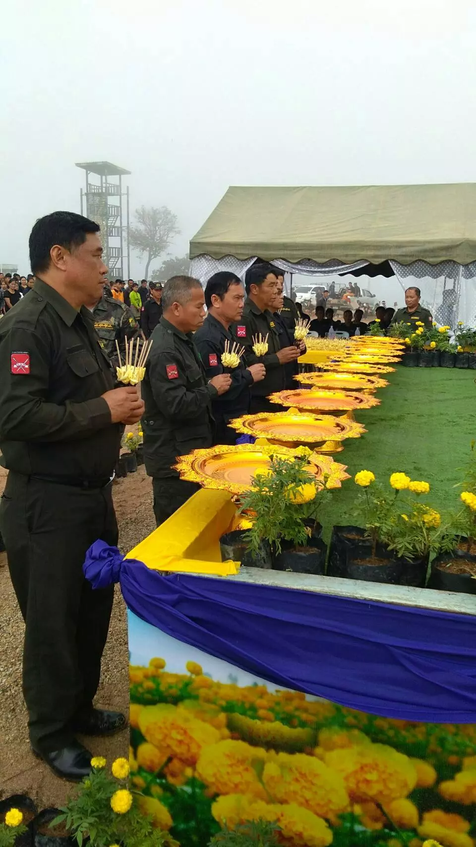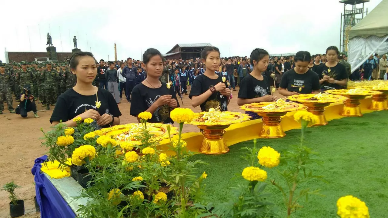 เมื่อวันที่ 26 ต.ค. ผู้สื่อข่าวรายงานว่า ณ ฐานดอยไตแลง เขตรัฐฉาน ประเทศเมียนมา ฐานที่มั่นและกองบัญชาการของกองกำลังกองทัพกู้ชาติแห่งรัฐฉาน มี พล.อ.เจ้ายอดศึกเป็นผู้นำ ซึ่งตั้งอยู่ตรงข้ามบ้านปางคาม ต.ปางมะผ้า อ.ปางมะผ้า จ.แม่ฮ่องสอน ได้จัดพิธีวางดอกไม้จันทน์ เนื่องในวันพระราชพิธีถวายพระเพลิงพระบรมศพ พระบาทสมเด็จพระปรมินทรมหาภูมิพลอดุลยเดช บรมนาถบพิตร แสดงให้เห็นถึงพระเกียรติคุณขจรไกล และสำนึกในพระมหากรุณาธิคุณ.