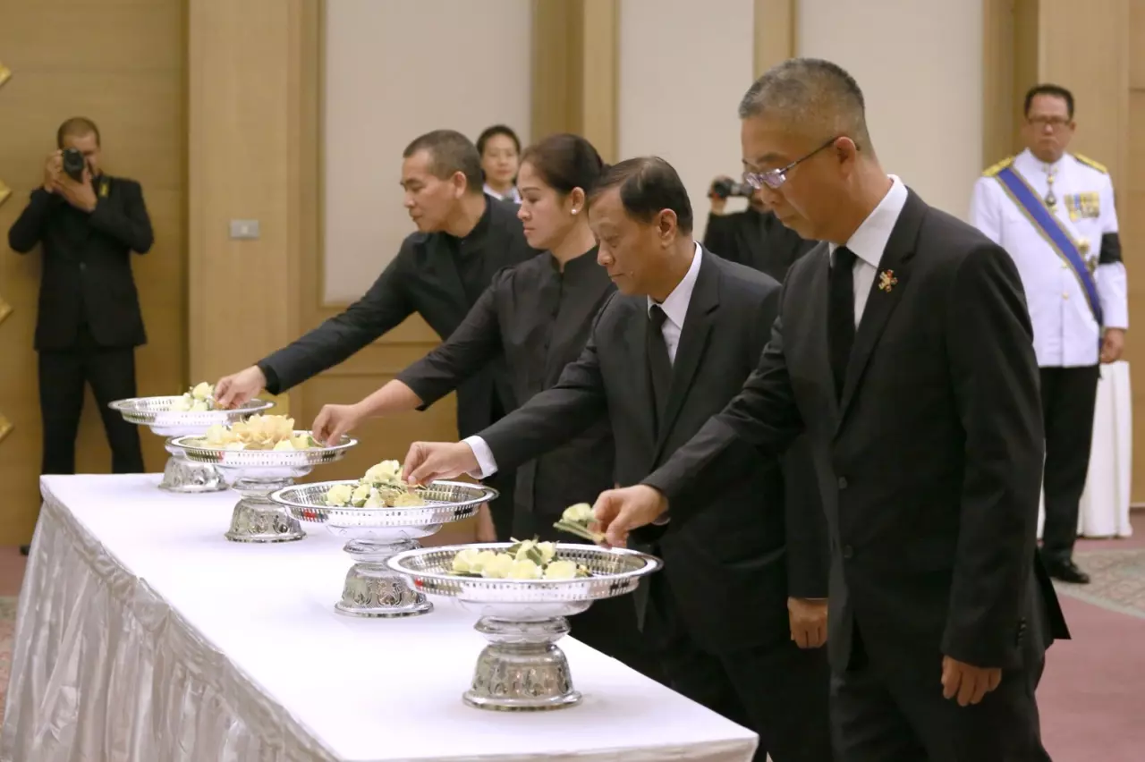 โดยในพิธี คณะสงฆ์ระดับสูงของกัมพูชาทั้งฝ่ายมหานิกายและธรรมยุติกนิกาย โดยการนำของ สมเด็จพระอัคคมหาสงฆ์ราชาธิบดี กิติอุทธ์เทศบัณฑิตเทพวงศ์ สมเด็จพระมหาสังฆราช สมเด็จพระมหาสุเมธาธิบดี นน แหงด สมเด็จพระสังฆนายก สมเด็จพระวนรัตน์กิตติบัณฑิต นอย จรึก รองพระสังฆนายก ลำดับที่ 3 พระมุนีโกศล คึม สอน พระจตุมุขมงคลรังสี เจ้าคณะราชธานีพนมเปญ พระธรรมโฆษาจารย์ คี สุวรรณรัตนา พระโฆษธรรมสุคนธา พระปิฏกธรรม เมา นิม พระครูสิลาจารคุณ พระครูธรรมราชจริยา พระมหา เจีย สมเอียง เป็นผู้นำประกอบพิธี ขณะที่มีชาวไทยและชาวกัมพูชามาร่วมในพิธีเป็นจำนวนมาก.