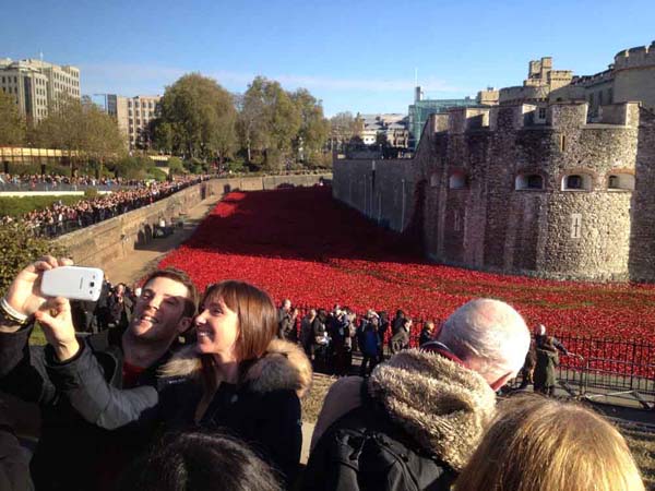 ภาพ 6.1-6.2 บางครั้งการเดินทางก็โชคดีมีอะไรที่ตื่นตาตื่นใจให้ดู อย่างเช่นไปทำงานที่ ประเทศอังกฤษ ซึ่งอยู่ในช่วง วันทหารผ่านศึก สิ่งที่เห็นคือจำนวนคนเยอะมากๆ มุงดูอะไรบางอย่าง เราก็ ไทยมุง ซะด้วย อย่าให้เสียชื่อ เลยต้องไปมุงดูกับชาวอังกฤษบ้าง (ไปมุงตอนที่ว่างจากงานนะครับ นานๆทีจะว่างได้ดูตามข้างทาง) สิ่งที่ได้เห็นตรงหน้า หลังจากเบียดเข้าไปใกล้ๆ ผมเห็น ดอกป๊อปปี้เซรามิกนับแสน ไหลลงมาจาก ทาวเวอร์ ออฟ ลอนดอน เพื่อรำลึกถึงทหารอังกฤษ ผลงานนี้ชื่อ บลัด สเวป แลนด์ส แอนด์ ซี ออฟ เรด ดูมีภูมิความรู้นะครับ จริงๆข้อมูลเหล่านี้ไม่รู้ในตอนแรกหรอกครับ มีพี่ๆ บอกมาอีกที ก็เลยอยากจะบอกว่า บางครั้งถ้าเรารู้หรือมีข้อมูลในการท่องเที่ยวบ้าง อาจจะทำให้การท่องเที่ยวมีความหมายมากขึ้น ซาบซึ้งถึงประวัติศาสตร์ของสถานที่นั้นๆ