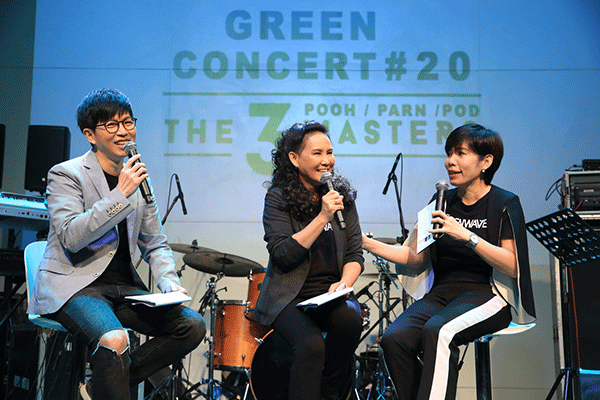เปิดงานแถลงข่าว กรีนคอนเสิร์ต หมายเลข 20 โดยมี ดีเจอ้อย นภาพร ไตรวิทย์วารีกุล และ ดีเจเป้ วิศวะ กิจตันขจร รับหน้าที่พิธีกรพร้อมเชิญ พี่ฉอด สายทิพย์ มนตรีกุล ณ อยุธยา บอสใหญ่ เอ-ไทม์ มีเดีย ขึ้นร่วมพูดคุยถึงที่มาของคอนเสิร์ตครั้งนี้ให้ฟังว่า “กรีนคอนเสิร์ตถือเป็นประเพณีใหญ่ประจำปีของคลื่นเราค่ะ และกรีนเวฟยังเป็นคลื่นแรกและคลื่นเดียวที่มีคอนเสิร์ตใหญ่ประจำปีติดต่อกันมาถึง 20 ปีแล้ว นับตั้งแต่ครั้งแรกจนถึงครั้งนี้เราร่วมกันทำสิ่งดีดีซึ่งรวมเป็นยอดเงินบริจาคที่ผ่านมาทั้งหมดถึง 20 ล้านบาทแล้ว และสำหรับ GREEN CONCERT # 20 POOH PARN POD THE 3 MASTERS ครั้งนี้เราชวนทั้ง 3 คนที่เรียกว่าเป็นต้นแบบที่สร้างปรากฏการณ์เอาไว้มากมาย ไม่ว่าจะเป็น ปุ๊ อัญชลี กับปรากฎการณ์ร็อคสตาร์หนึ่งเดียวคนนี้ ซึ่งความเท่จากวันนั้นจนวันนี้ยังไม่เปลี่ยนแปลง ส่วน ปาน ธนพร ก็สร้างปรากฏการณ์ดราม่ากระหน่ำโซเซียลและเป็นผู้ถ่ายทอดอารมณ์ความดราม่าของผู้หญิงผ่านเสียงเพลงได้อย่างถึงแก่นจริงๆ และคนสุดท้าย ป๊อด ธนชัย ปรากฏการณ์ อัลเตอร์ขาโดดผู้ที่มีความอัลเตอร์อยู่ในสายเลือด และเมื่อทั้ง 3 คนนี้มารวมตัวอยู่บนเวทีเดียวกัน มันจะเกิดเป็น ภาพใหม่ในวงการและเชื่อว่าจะสามารถสร้างปรากฎการณ์ความสนุกได้อีกครั้งอย่างแน่นอน และที่สำคัญเหมือนทุกปี กรีนคอนเสิร์ตจะมอบรายได้ส่วนหนึ่งให้การกุศล ปีนี้รายได้ส่วนหนึ่งเราจะนำไปซื้อเครื่องกระตุกหัวใจ (AED) เพื่อมอบให้กับโรงพยาบาลในถิ่นทุรกันดารด้วยค่ะ”