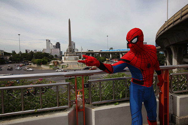 ‘สไปเดอร์แมนฟีเวอร์’ห้อยโหนยิงใยแจกความตื่นเต้นทั่วกรุงฯ