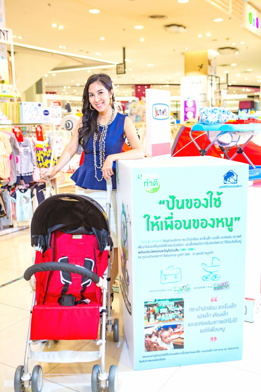 เริ่มที่คุณแม่ลูกสี่ ดร.พอลลีน ล่ำซำ กล่าวว่า “พีตั้งใจว่าจะปลูกฝังลูกๆ ให้เห็นคุณค่าของใช้ โดยเฉพาะ น้องโรจน์ ลูกชายคนโต ที่มักจะได้ของใช้ใหม่ก่อนใครก็ต้องสอนเขาว่าให้รู้จักคุณค่าของใช้ อะไรที่ยังใช้ได้ก็ให้ใช้ ไม่ใช่ต้องซื้อใหม่ทุกครั้ง เช่น ช่วงเปิดเทอม เราก็จะมาสำรวจว่าอะไรที่ควรซื้อ หรือของเดิมอะไรที่ยังใช้ได้ วันนี้ก็เลยมาเลือกซื้อของที่จำเป็นให้น้องโรจน์ และทราบมา ว่าโรบินสันมีกิจกรรมดีๆ รับบริจาคของใช้เด็กให้น้องผู้ยากไร้ วันนี้ก็เลยนำรถหัดเดินเด็กมาบริจาค เพราะพีเชื่อว่าพัฒนาการของเด็กเป็นสิ่งสำคัญ โดยเฉพาะกับการหัดเดิน เพื่อให้พวกเขาได้เติบโตเป็นเด็กที่มีคุณภาพต่อไปค่ะ”