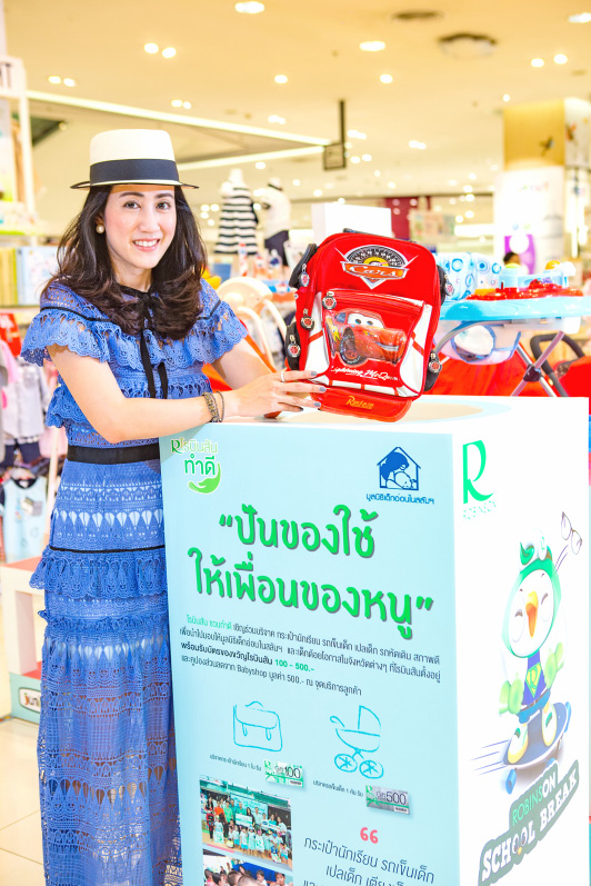 ในแคมเปญ “Robins On School Break” (โรบินส์ ออน สคูล เบรค) เชิญชวนนักช็อปร่วมบริจาค กระเป๋านักเรียน รถเข็นเด็ก เปลเด็ก รถหัดเดิน ที่ใช้แล้วสภาพดี หรือของใหม่ เพื่อส่งต่อให้น้องๆ ในมูลนิธิเด็กอ่อนในสลัมฯ และน้องๆ ยากไร้ในจังหวัดต่างๆที่โรบินสันตั้งอยู่ ซึ่งลูกค้าที่นำของมาบริจาค ทางโรบินสันจะมอบบัตรของขวัญมูลค่าสูงสุด 500 บาท เพื่อใช้เป็นส่วนลดในการซื้อสินค้าแผนกเด็ก ของเล่นเด็ก กิฟท์ช็อป และเบบี้ช็อปโดยไม่จำกัดยอดช็อป ตั้งแต่วันนี้-14 พฤษภาคม 2560 ที่โรบินสัน ดีพาร์ทเม้นท์สโตร์ และโรบินสันไลฟ์สไตล์ สาขาที่ร่วมรายการ