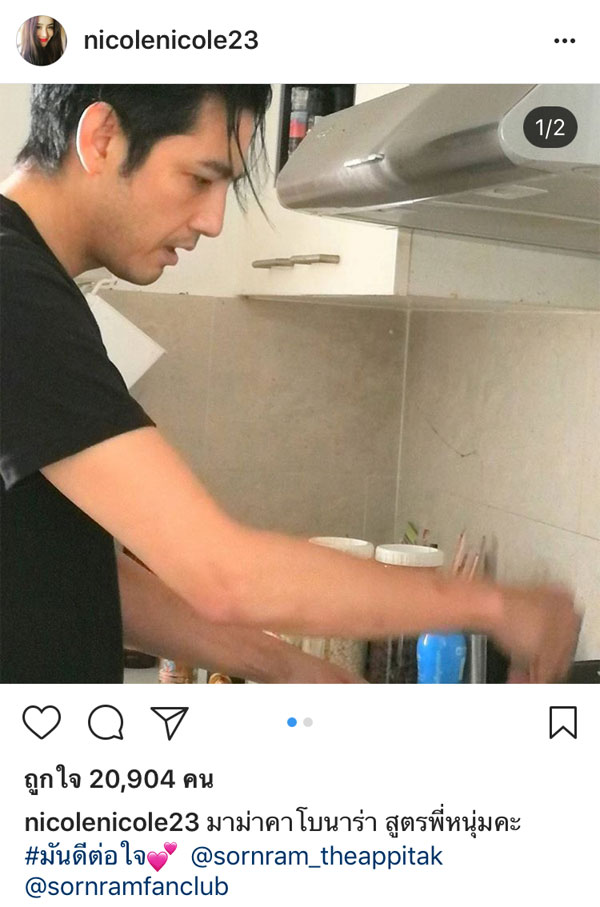 เปิดตัวคบกันก็ได้เห็นโมเม้นท์หวานของทั้งคู่อยู่บ่อยๆ สำหรับ “นิโคล เทริโอ” และ “หนุ่ม ศรราม เทพพิทักษ์” ซึ่งล่าสุดสาว “นิโคล” ก็ได้เผยโมเม้นท์ที่ “หนุ่ม ศรราม” เข้าครัวทำอาหารให้กินพร้อมแคปชั่นสุดฟินว่า “มาม่าคาโบนาร่า สูตรพี่หนุ่มคะ #มันดีต่อใจ @sornram_theappitak @sornramfanclub”