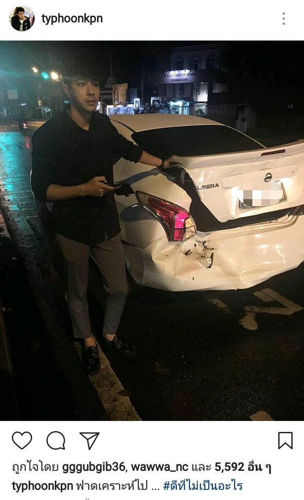 ‘ใต้ฝุ่น เคพีเอ็น’ขับรถชนท้ายพังยับ!ฟาดเคราะห์ก่อนเบญจเพศ