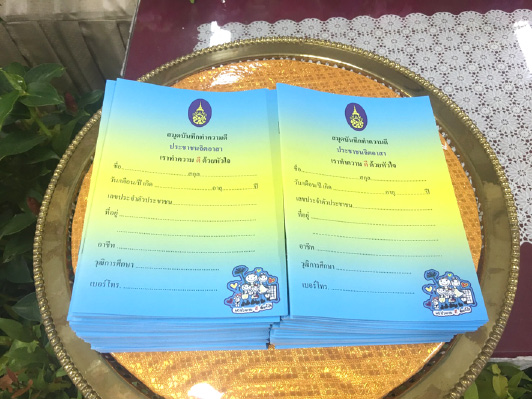 ทั้งนี้ ประชาชนจิตอาสาที่สนใจเชิญร่วมทำความดีด้วยหัวใจ ลงทะเบียนรายงานตัว โดยใช้บัตรประจำตัวประชาชนหรือ Smart Card ซึ่งเปรียบเสมือนบัตรทำความดี เพื่อรายงานตัวรับสิ่งของพระราชทานประกอบด้วย 1.หมวกแก๊ปสีฟ้า พระราชทาน2.ผ้าพันคอประชาชนจิตอาสา พระราชทาน3.สมุดบันทึกความดี ประชาชนจิตอาสาพระราชทาน ได้ที่ศูนย์รับลงทะเบียนตรวจสอบสิทธิ์ และลงเวลาบันทึกสะสมการทำความดี ตั้งอยู่ที่โรงเรียนสุโขทัยซอยสุโขทัย 2 ถนนสุโขทัย เขตดุสิต กทม.ตั้งแต่วันนี้จนถึงวันที่ 27 มิถุนายน 2560เวลา 07:30 น. เป็นต้นไป