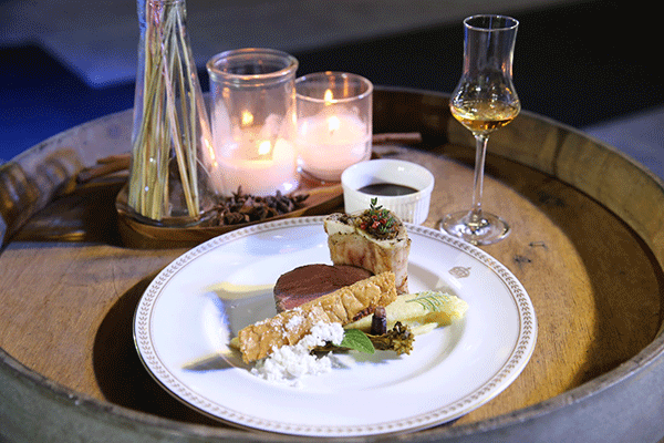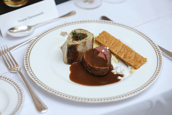 โดยงานนี้แขกที่เข้าร่วมงานยังจะได้ลิ้มรสดินเนอร์แบบสกอตแท้ๆ ปรุงโดยเชฟชื่อดัง ชาร์ลี เคเดอร์ เริ่มจากเมนูกระตุ้นความอยากอาหาร นั่นก็คืออะมูซบูช “หอยเชลล์ห่อใบชิโสะ และเลมอนบูเล่” ตามต่อด้วยคอร์สแรก “ไอซ์แพลน์จากบริตานีและทูน่าทาร์ทาร์และพอนซู” ซึ่งเสิร์ฟเคียงคู่ ทาลิสเกอร์ 10 ปี คอร์สที่สอง “ริซอตโตกุ้งลายเสือ กับเนยล็อบสเตอร์ เลมอนโฟม และยอดอ่อนต้นถั่ว” เสิร์ฟคู่กับ โอบัน 14 ปี ที่มาในแก้วเชมเปญแช่เย็นจัด ลอยหน้าด้วยโซดา คอร์สที่สาม แขกร่วมงานสมารถเลือกระหว่าง “เทนเดอร์ลอยเนื้อวัวกับไขกระดูก ซอสไวน์แดงและมันฝรั่งผัด” เสิร์ฟกับลากาวูลิน 16 ปี หรือ “ปลากะพงย่าง กับครีมผักชีและไข่มุกมันสำปะหลังในซอสหญ้าฝรั่น” เคียงคู่กับ เฮ้กคลับ เสิร์ฟพร้อมน้ำแข็งก้อนใหญ่ของหวานปิดท้ายคือ พานาคอตต้าราสเบอรีห้าแบบ (มาร์ลแมโลว, แบบขนมเบื้อง, แยม, แบบสดและแบบกรอบ) จับคู่กับ เดอะ ซิงเกิลตัน ออฟ เกลน ออร์ด 12 ปี เสิร์ฟบนน้ำแข็งบดและแต่งด้วยราสเบอรี
