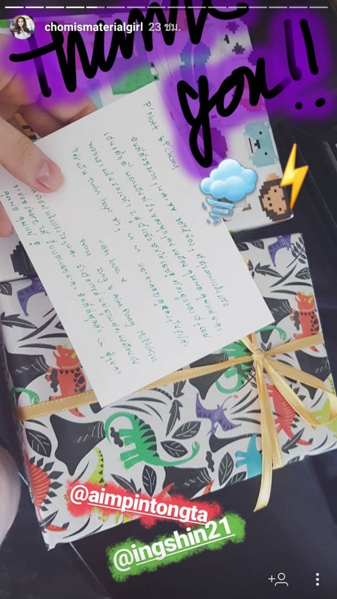 โดยล่าสุดสาวชมได้แชร์ภาพลงในอินสตาแกรมสตอรี่ เผยให้เห็นของขวัญจากเพื่อนๆ หนึ่งในนั้นมีของขวัญจาก “เอม พินทองทา” และ “อุ๊งอิ๊ง แพทองธาร” ที่ส่งรองเท้าผ้าใบเด็กสีดำและสีขาว พร้อมกับคำอวยพรแสดงความห่วงใยมาให้กับสาวชมพู่และหนุ่มน็อตด้วย