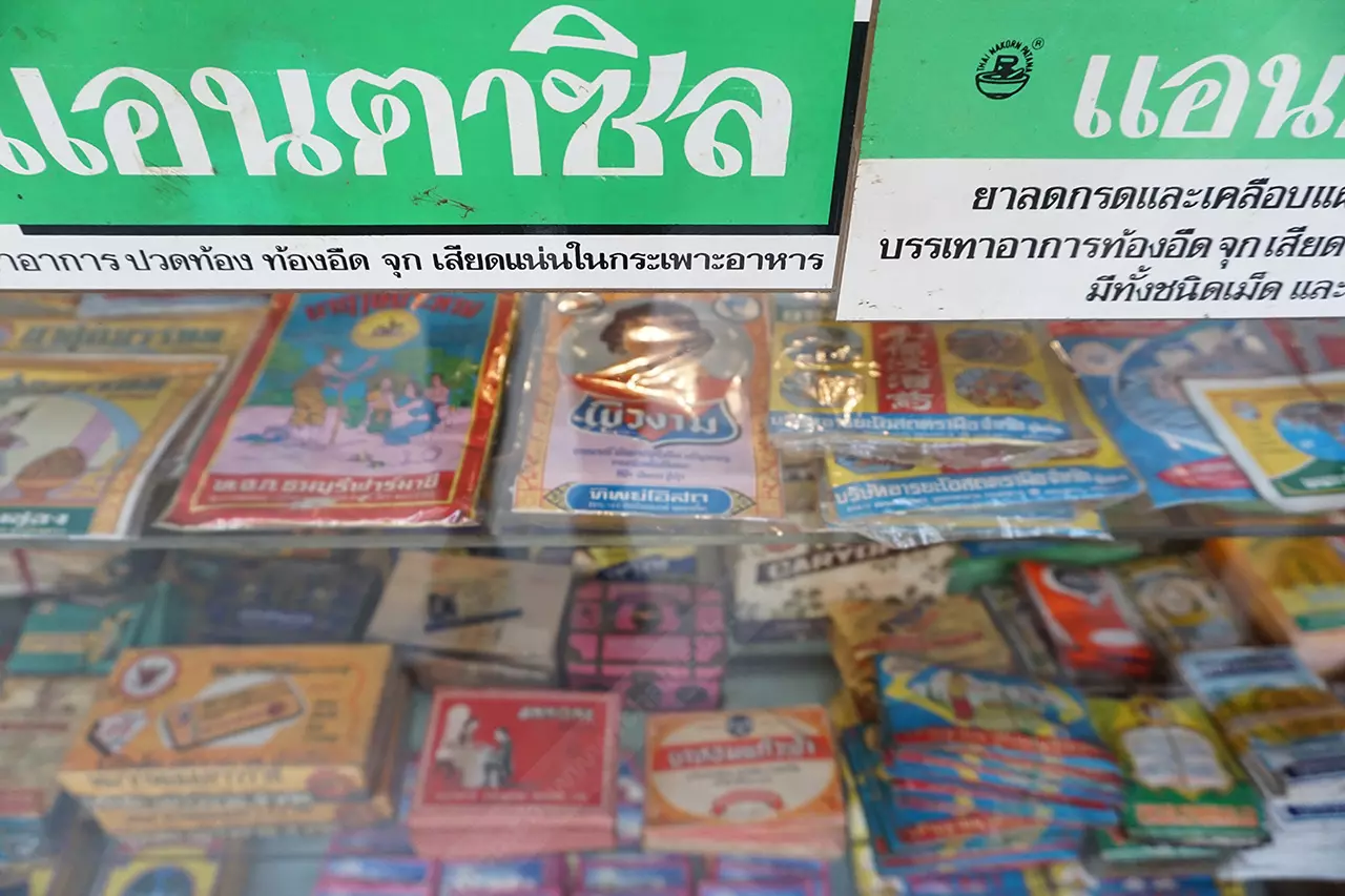 เข้าไปดู เออ เป็นยาแผนโบราณจริงด้วยแฮะ มีตาชั่งยาเก่า มีลูกคิด มีตู้ใส่ยาจีนแห้งอยู่หลายประเภท ส่วนด้านหน้าก็มียาแผนปัจจุบัน (ในยุคนั้น) วางจำหน่ายด้วย เช่น ยาฤาษีประทาน ยาหอมแก้วฟ้า ผิวงามทิพย์โอสถ หมากหอมเยาวราช แอนตาซิล เป็นต้น เด็กสมัยนี้ไม่รู้ว่าจะรู้จักกันหรือเปล่า