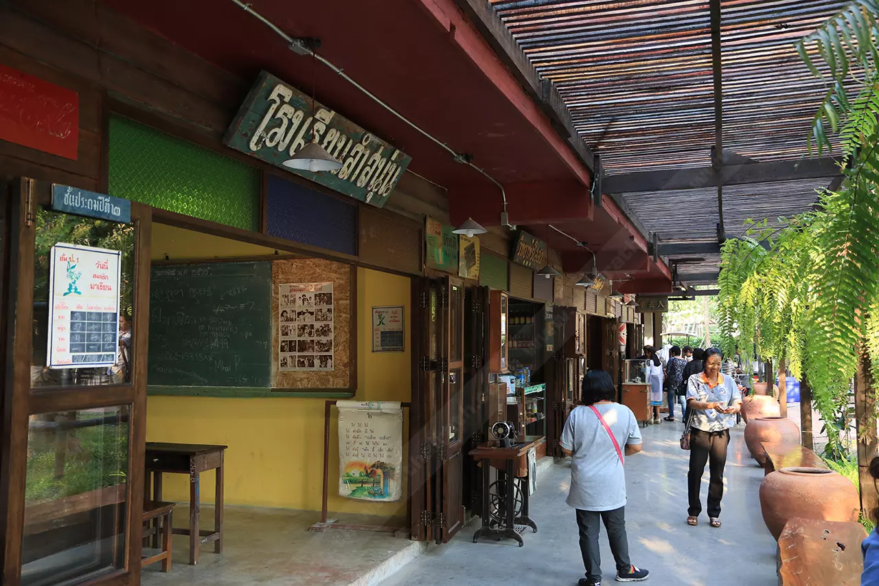 เดินเที่ยวปิดท้ายกันที่ ‘โซนพิพิธภัณฑ์ของเก่า’ โซนนี้มีห้องจัดแสดงหลายห้องตั้งอยู่ติดๆ กันเลย ได้แก่ โรงเรียนลำสนุ่น ร้านขายยาวิทยาพรโอสถ ร้านโชห่วยไทยเจริญทรัพย์ ร้านเจียเซ่งกี่ ร้านบาร์เบอร์โบราณ เป็นต้น