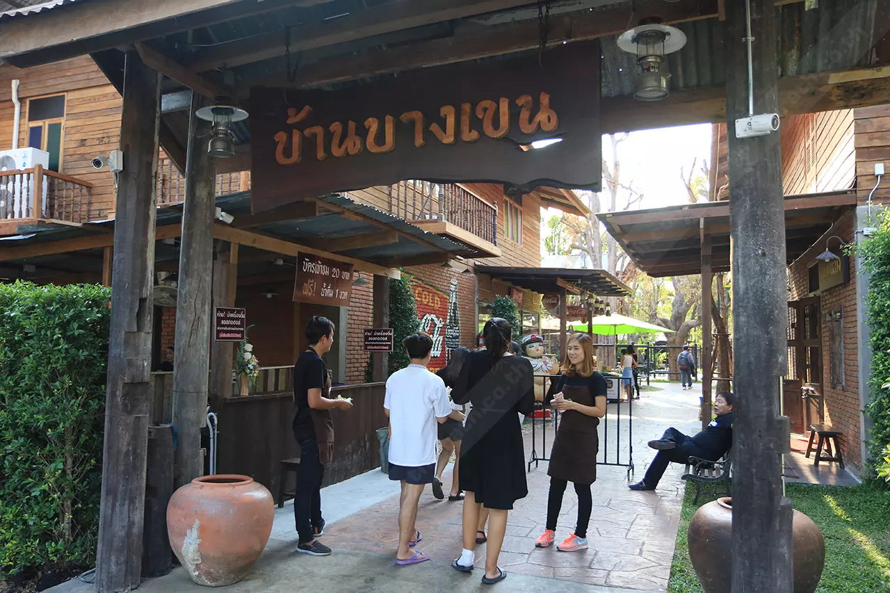 พอท้องอิ่มก็ได้เวลาเดินเที่ยวชิลๆ ถัดเข้ามาอีกเล็กน้อยจะมีซุ้มประตูทางเข้าชมโซนอื่นๆ ของบ้านบางเขน ตรงนี้ต้องซื้อบัตรค่าเข้าชมก่อน คนละ 20 บาท บัตรนี่อย่าขยำทิ้งนะ เพราะเอาไปแลกน้ำเปล่าฟรีได้ 1 ขวด หรือจะเอาไปเป็นส่วนลดในร้านกาแฟวินเทจก็ได้ เลือกเอาตามใจชอบ