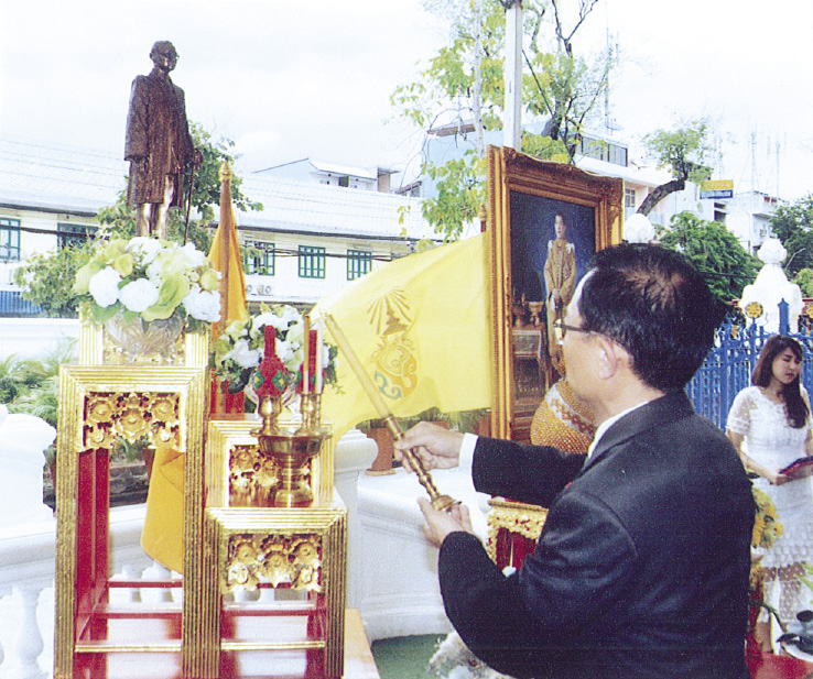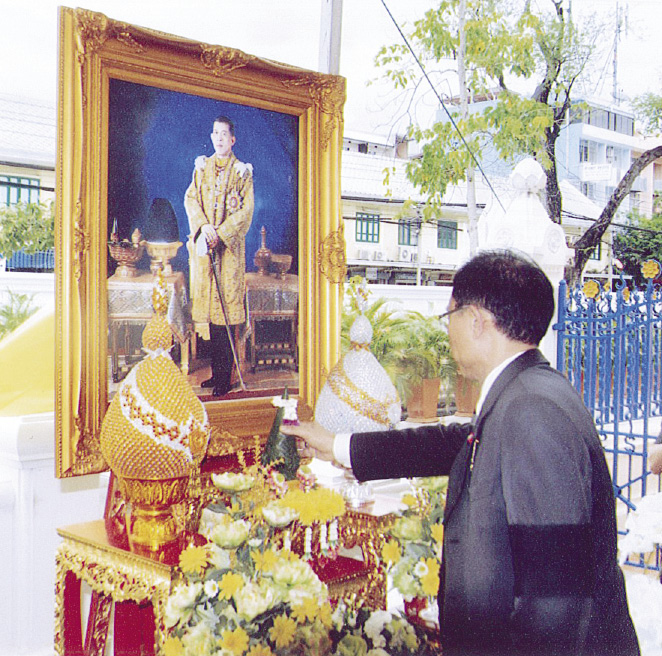 ชัยพรรษ เสริมสุวรรณ รองอธิบดีผู้พิพากษาศาลเยาวชนและครอบครัวกลาง ประธานในพิธีฝ่ายฆราวาส จุดเครื่องทองน้อยหน้าพระบรมรูป พระบาทสมเด็จพระปรมินทรมหาภูมิพลอดุลยเดช เพื่อถวายเป็นพระราชกุศลแด่พระองค์