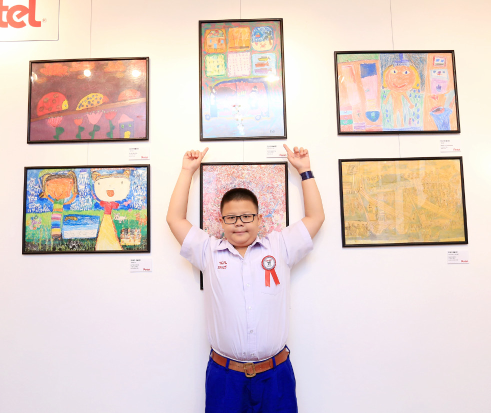 ภูสิทธิ น้านิรัติศัย อายุ 9 ปี โรงเรียนเซนต์คาเบรียล รับรางวัล Silver Award กล่าวว่า “ส่งประกวดปีนี้เป็นปีที่ 3 ได้รางวัลครั้งนี้เป็นครั้งแรก ภาพที่วาดเป็นภาพที่รวบรวมสัญลักษณ์ของประเทศไทยไว้ในภาพเดียว ได้แก่ ช้าง, ตุ๊กตุ๊ก, โบสถ์, นาข้าว และ ตัวอักษร ก-ฮ อยากสื่อสารให้คนต่างประเทศได้รู้จักประเทศไทยให้มากขึ้น โดยครั้งนี้ใช้สีชอล์กในการสร้างสรรค์ผลงาน อยากขอเชิญชวนเพื่อนๆ ส่งผลงานเข้าประกวดในปีหน้ากันเยอะๆ นะครับ ช่วยกันสร้างชื่อเสียงให้เด็กใทย”