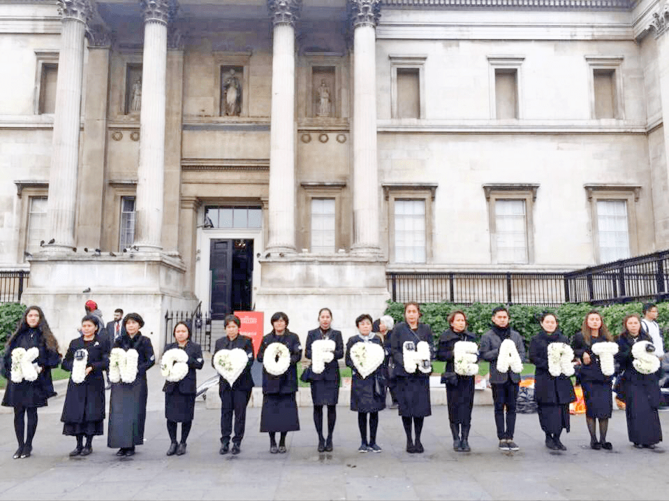 จึงขอเชิญชวนชาวไทยในยุโรปและทั่วโลก สวมเสื้อทีเชิ้ตสีดำสกรีนลาย KING OF HEARTS ในหลวงในดวงใจ หรือชุดสีดำสุภาพร่วมงาน “ในหลวงในดวงใจ ครั้งที่ 4” โดยพร้อมเพรียงกัน ในวันที่ 14 ตุลาคม 2560 ณ วัดพุทธปทีป กรุงลอนดอน หรือติดตามรายละเอียดการจัดกิจกรรม ได้ทาง https://www.facebook.com/kingofhearts2014/ และเชิญชวนติดแฮชแท็ก #ร่วมถวายอาลัย #ร่วมส่งเสด็จ #ในหลวงในดวงใจ #ในหลวงในดวงใจ4อังกฤษ