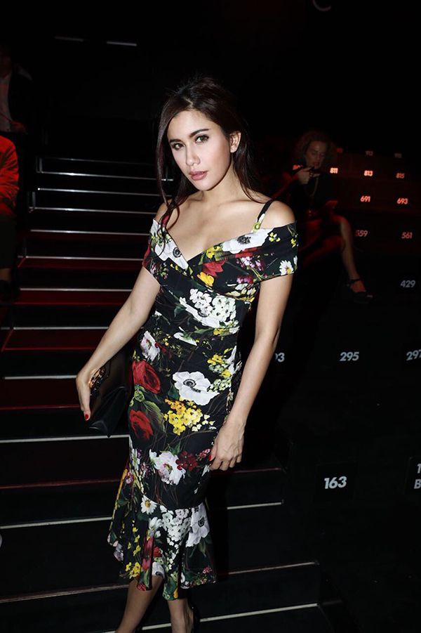 งานนี้บอกได้คำเดียวว่า คนไทยที่รอให้กำลังใจเธออยู่ไม่ผิดหวัง เพราะ ปู ปรากฎตัวมาในลุค แกลมแถมสวยสง่าด้วยชุดจาก Dolce & Gabbana คอลเลกชั่นฟอลล์/วินเทอร์ 2017 กับลุคเดรสเกาะอกคาดสายเดี่ยวลายดอกไม้เอกลักษณ์เด่นของแบรนด์ บวกด้วยแอคเซสซอรี่มินิคลัชใบขนาดพอเหมาะ แมทช์สีเข้ากับรองเท้าส้นสูงหนังกลอสซี่ที่ดูแล้วเก๋ไม่เบา ส่วนโททัลเมคอัพลุค เลือกสีปากนู้ดแมทช์กับชุด พร้อมรวบผมด้านหลังและปล่อยด้านหน้าในลุคแบบสบายๆ แต่ก็เผยความเป็นสาวมั่นผสมความเซ็กซี่เล็กๆ ในแบบฉบับสาวปู ได้อย่างลงตัวที่สุด