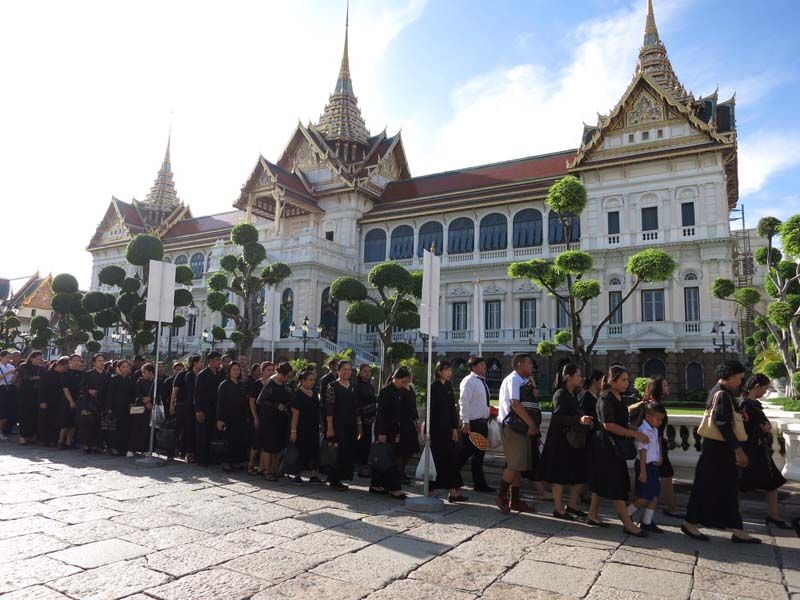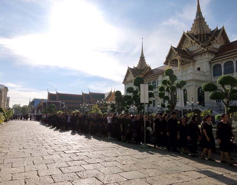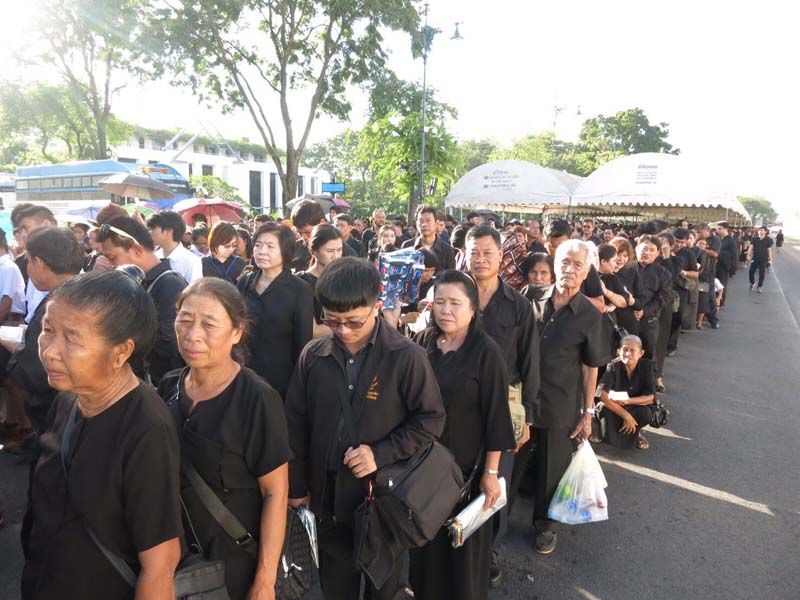 ยิ่งใกล้จะถึงกำหนดวันสุดท้ายที่พสกนิกรของพระบาทสมเด็จพระเจ้าอยู่หัว รัชกาลที่ 9 จะได้มีโอกาสเข้ากราบถวายบังคมพระบรมศพ ก็ยิ่งปรากฏว่าพสกนิกรไทยผู้จงรักภักดีต่างหลั่งไหลไปเพื่อการนี้มากยิ่งขึ้น ดังปรากฏจำนวนของผู้ที่ไปเข้าแถวเพื่อรอคิวเข้าในพระที่นั่งดุสิตมหาปราสาทในแต่ละวันหลายหมื่นคน (บางวันมีจำนวนกว่า 7 หมื่นคน) ผู้ที่ไปเข้าคิวรอมีทั้งเด็ก ผู้ใหญ่ ผู้สูงอายุ และผู้พิการ ซึ่งพสกนิกรเหล่านี้มาจากทั่วทุกสารทิศของพระราชอาณาจักรไทย และจากต่างประเทศ คนจำนวนไม่น้อยบอกว่าเดินทางมาจากต่างจังหวัด เช่น เชียงราย แม่ฮ่องสอน ปัตตานี ยะลา นครพนม สุรินทร์ ฯลฯ ถึงแม้จะรู้ดีว่าต้องมาเข้าคิวรอเป็นเวลานานเป็นวันกว่าจะได้เข้ากราบถวายบังคมพระบรมศพ แต่ทุกคนบอกตรงกันว่า ยินดีและเต็มใจรอ ต่อให้ต้องรอข้ามวันข้ามคืน ไม่ว่าฝนจะตกหนัก อากาศจะร้อนจัดสักเพียงใดก็จะรอ เพราะต้องการเพียงแค่ได้เข้าไปกราบถวายบังคมพระบรมศพของพระผู้ทรงเป็นพ่อของแผ่นดินไทยสักครั้งหนึ่ง แต่บางคนก็บอกว่า เข้าไปกราบถวายบังคมมาแล้วมากกว่า 40 ครั้ง และก็ยืนยันว่าจะไปกราบถวายบังคมอีกจนกว่าจะถึงวันที่ 5 ตุลาคม 2560