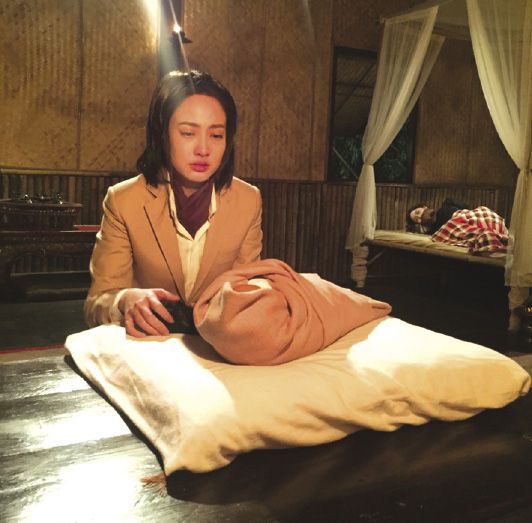 ฉากนี้ทำเอาน้ำตานองหน้ากันตั้งแต่ตอนที่ แม้นเมือง อุ้มลูกมาหามิ่งหล้า (มิว-นิษฐา) ฝากฝังให้ดูแลลูกของตนเอง และมัดมือมัดเท้ามิ่งหล้าเพื่อไม่ให้ตามไปช่วยเหลือตนเองได้ ทั้งมิวและแต้ว กอดคอกันร้องไห้ เหมือนเปิดก๊อกบรรยากาศในการถ่ายทำ จึงเต็มไปด้วยความเศร้า มิวซึ่งถูกมัดปากไว้ ไม่ให้พูดก็พยายามบอก อยากจะขอโทษพี่สาวตนเอง ในทุกสิ่งที่ผ่านมา แต่ก็พูดออกมาไม่ได้ เพราะแต้วกลัวว่ามิวจะตะโกนให้คนมาช่วย ฉากนี้แนะว่าต้องเตรียมผ้าเช็ดหน้าผืนโตๆ เอาไว้ข้างกาย