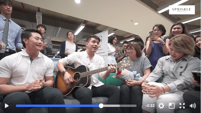 ต้องบอกว่าแคมเปญนี้ไม่ธรรมดาเลยทีเดียว ทาง น้ำดื่มสปริงเคิล ได้จัดทีมงานชุดพิเศษเอาไว้สร้างเซอร์ไพรส์ให้ #แม่ของออฟฟิศ โดยพาสองศิลปินสุดหล่อ “แสตมป์-อภิวัชร์ เอื้อถาวรสุข” และ “ว่าน-ธนกฤต พานิชวิทย์” บุกไปถึงออฟฟิศ “หนุ่มแสตมป์” ไม่ทำให้ผิดหวังแต่งเพลงพิเศษให้ถึงโต๊ะทำงาน ส่วน “หนุ่มว่าน” ก็จัดมินิคอนเสิร์ตแบบส่วนตั๊ว…ส่วนตัว