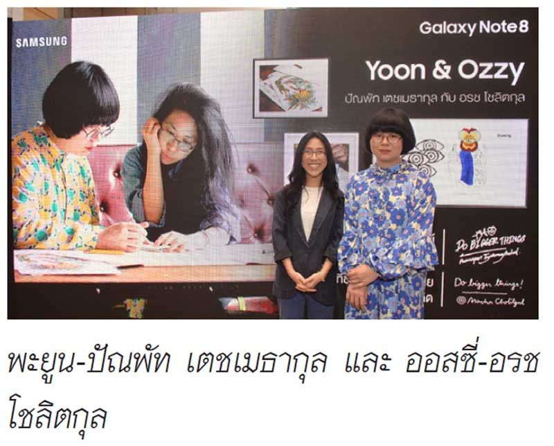 สิ้นสุดการรอคอยของบรรดาโน้ตแฟนเมื่อ ซัมซุง จัดงานเปิดตัว“ซัมซุง กาแลคซี่ โน้ต 8” (Samsung Galaxy Note 8)ภายใต้แนวคิด “Do Bigger Things-ทำให้ใหญ่กว่าใจคิด” ตอบโจทย์ผู้บริโภคกลุ่มมิลเลนเนียลที่ต้องการสร้างสรรค์สิ่งใหม่ๆ ให้ยิ่งใหญ่ขึ้นกว่าเดิม พร้อมเชิญคนรุ่นใหม่ที่เต็มไปด้วยแรงบันดาลใจคิดการใหญ่ อาทิ ก้อง-กฤษฏิ์ จิระเกียรติวัฒนา เจ้าของ Hive Salon, พะยูน-ปัณพัท เตชเมธากุล และ ออสซี่-อรช โชลิตกุล คู่หูนักวาดภาพไทยผลงานระดับโลก มาชวนให้ทุกคนลุกขึ้นมาสร้างสรรค์สิ่งใหม่ๆ ให้ใหญ่กว่าที่ใจคิด พร้อมด้วยเซลบริตี้ที่มาร่วมพิสูจน์ประสิทธิภาพของสมาร์ทโฟนที่ดีที่สุดอย่างคับคั่ง ณ โรงแรมอวานี ริเวอร์ไซด์