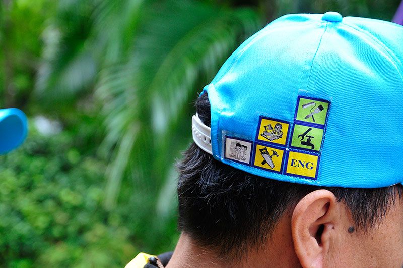 สำหรบชุดปฏิบัติงานพระราชทานของจิตอาสาเฉพาะกิจนี้ ประกอบด้วย เสื้อโปโลสีดำ ด้านหน้าสกรีนข้อความ “ธ สถิตในดวงใจไทยนิรันดร์” ด้านหลังสกรีน “พระราชทาน” และภาพวาดการ์ตูนฝีพระหัตถ์, ผ้าพันคอสีเหลือง, ปลอกแขนสีดำ, บัตรประจำตัวจิตอาสาเฉพาะกิจ และหมวกแก๊ปสีฟ้า ที่ได้ติดสัญลักษณ์กรุ๊ปเลือดและความสามารถของจิตอาสาแต่ละคน เช่น A คือ เลือดกรุ๊ปเอ, ENG คือ พูดภาษาอังกฤษได้, รูปจักรยายนต์ คือ ขับขี่จักรยายนต์ได้ เป็นต้น เพื่อให้ประชาชนที่มาร่วมงานสามารถขอความช่วยเหลือจากจิตอาสาได้