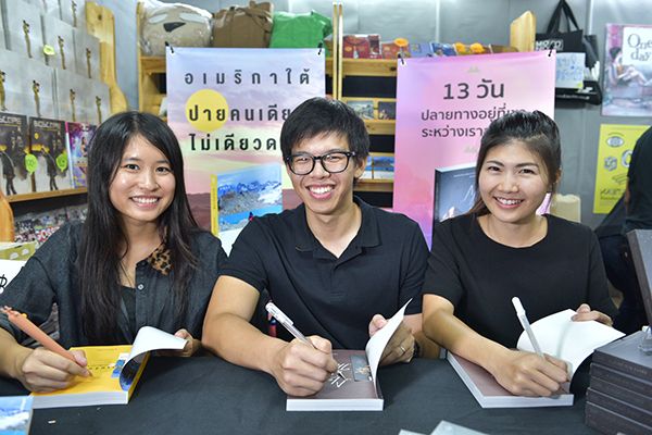 กัญญภัทร สุขสมาน ผู้ช่วยผู้อำนวยการธุรกิจสื่อสิ่งพิมพ์ บริษัท โมโน เจนเนอเรชั่น จำกัด เป็นตัวแทนสำนักพิมพ์ “GEEK BOOK” (กี๊ก บุ๊ค) ร่วมงานเปิดตัว 2 หนังสือบันทึกการเดินทางสุดพิเศษ “A Long Way There 13 วัน ปลายทางอยู่ที่เขา ระหว่างเราอยู่ที่ใจ”และ “อเมริกาใต้ ปายคนเดียวไม่เดียวดาย Travel Miles Away” โดยมีผู้เขียน โบ๊ท-ภควัต ทองเจริญ, ฝ้าย-ปริชญา สุทธิเวทย์ และ ปาย-สุธาสินี ไกรดาราธิกร ร่วมพูดคุย ณ เวทีกลาง งานมหกรรมหนังสือระดับชาติ ครั้งที่ 22 ศูนย์การประชุมแห่งชาติสิริกิติ์
