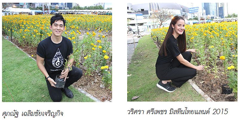 วริศรา ศรีเพชร มิสทีนไทยแลนด์ 2015 เผยว่า “รู้สึกดีใจที่ได้มาร่วมปลูกดอกดาวเรือง เพราะเหมือนเป็นการได้ทำดีเพื่อพระองค์อย่างหนึ่งเพราะท่านได้ทำเพื่อคนไทยมาเยอะแล้ว เราก็ได้ตอบแทน แม้เป็นสิ่งเล็กๆ น้อยๆ ก็อยากให้ทุกคนถ้ามีโอกาสก็มาร่วมกันปลูกดอกดาวเรืองด้วยกันคนละต้นพอปลูกรวมกันแล้วก็จะทำให้เกิดสวนที่สวยงามได้ สำหรับคำสอนของพระองค์ท่านที่ปฏิบัติตามคือการประหยัด เพราะรู้สึกว่าใช้เงินเยอะมาก เลยเริ่มประหยัดค่าใช้จ่ายบ้างแล้ว เช่น ไม่ซื้อของเกินความจำเป็น สิ่งที่มีอยู่แล้วถ้าไม่จำเป็นก็จะไม่ซื้อ”