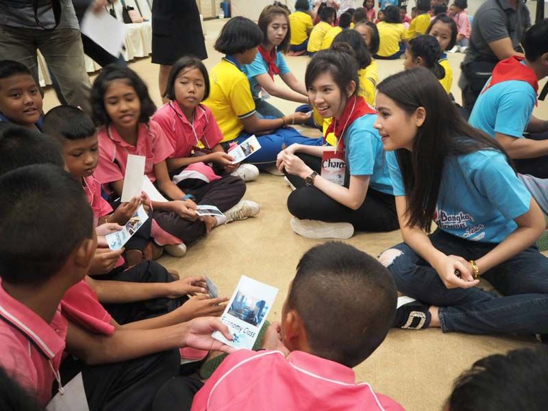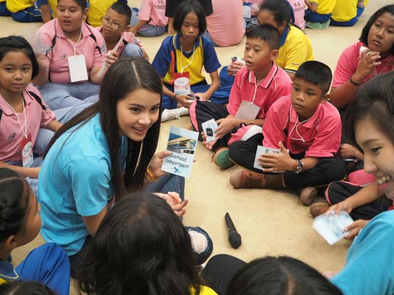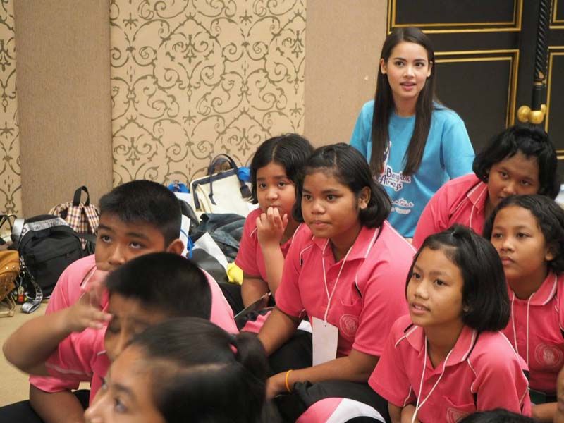 บางกอกแอร์เวย์สจัดขึ้นในชื่อ “English Club with Bangkok Airways” ซึ่งก็มีน้องๆที่สนใจเข้าร่วมกิจกรรมจากโรงเรียนที่อยู่รอบๆสนามบิน กว่า 120 ชีวิต ดูจากภาพบรรยากาศแล้วก็อดคิดไม่ได้ว่า “นี้แหละน๊าาา เขาถึงบอกว่า เธอเป็นแบบอย่างที่ดีให้กับดาราในวงการ” ทำประโยชน์ให้แก่สังคมและเป็นตัวอย่างที่ดีให้แก่เยาวชน แบบนี้สิถึงขึ้นชื่อว่าเป็นขวัญใจมหาชนที่แท้จริง
