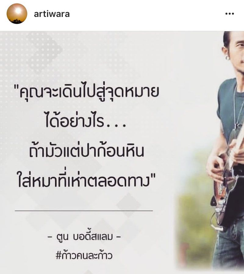 15 พ.ย.60 หลังจากที่โลกออนไลน์ได้มีการแชร์ข้อความ “คุณจะเดินไปสู่จุดหมายได้อย่างไร…ถ้ามัวแต่ปาก้อนหินใส่หมาตลอดทาง” โดยอ้างว่าเป็นพูดของ “ตูน บอดี้สแลม”หรือ อาทิวราห์ คงมาลัย นักร้องชื่อดัง จนทำให้เกิดดราม่านั้น