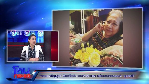 กลายเป็นดรามาร้อนแรง กรณีที่อดีตนางเอกดัง “ทราย เจริญปุระ” ถูกสำนักข่าวแห่งหนึ่งเผยแพร่ข้อความ “ความในใจจากลูกทรพี? เปิดค่ารักษาแม่ ทราย เจริญปุระ ต้องเล่นละครกี่เรื่องถึงจะจ่ายไหว” ซึ่งข้อความดังกล่าวทำให้ทรายถูกชาวเน็ตวิจารณ์แรง จนทำให้เจ้าตัวฉุนขาด แม้สื่อดังกล่าวจะออกแถลงการณ์แต่ทรายก็ตัดสินใจฟ้องร้องดำเนินคดีกับสื่อคู่กรณี ล่าสุดรายการโหนกระแส ได้เชิญทรายมาเป็นแขกรับเชิญเพื่อชี้แจงถึงประเด็นดังกล่าว