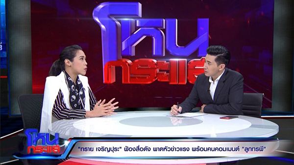 คนที่พาดหัวตัวนี้ออกมา เขาติดต่อเข้ามา?“ติดต่อมา ก็โทร.มาก่อน ต้องใช้คำว่าอ้างว่าเพราะทรายก็ไม่เห็นหน้าตา บอกว่าเป็นคนที่เขียนข่าวนี้ ขอโทษในความผิดพลาด มันเรียกว่าข้อผิดพลาดไม่ได้ คือกว่าคุณจะเขียนออกมา กว่าคุณจะส่งบก.ข่าว ส่งอะไรใดๆ มันต้องมีกระบวนการสักนิดหนึ่ง ไม่ใช่ว่าเขียนตกสระอุ สระไอ มันไม่ใช่ อย่างน้อยแสดงความจริงใจ คุณลงข่าวตรงนี้ คุณลงขอโทษได้มั้ยว่ามันเป็นความผิดใดๆของคุณก็ตามคุณก็ลงชื่อไป ก็ไม่มี สักพักก็ส่งมาใหม่ว่าขอโทษ ข่าวลงในสำนักข่าวนี้ แล้วก็ไปขอโทษอีกที่หนึ่ง แล้วก็แค่นั้น ทรายก็เลยบอกว่าคุยกับทนายทรายแล้วกัน คือนี่เป็นเรื่องเล็กน้อยที่สุดเท่าที่คนพึงจะกระทำต่อกันสำหรับการเรียกว่าลูกทรพี โดยไม่ชกหน้ากันซะก่อน ก็ไม่ได้มีการขานรับ หรือเร่งรีบในการแก้ไขอะไร”