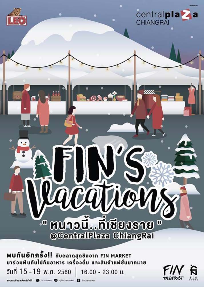 แหนม รณเดช “ พร้อมสัมผัสรับลมหนาวแรกในปีนี้มากๆครับ ดีใจมากที่ได้ไปร่วมงาน Fin’s Vacations หนาวนี้….ที่เชียงราย เพราะผมชอบอากาศแล้วก็บรรยากาศของชาวเหนือดูอบอุ่นดีครับ เพลงที่ จะเล่นครั้งเลยเตรียมเพลงที่มีจังหวะชิว ชิว ให้อินกันกับความเย็นของอากาศกันหน่อย หรือ อาจจะมีโยกกันเบาๆ งานนี้ ไม่ได้มีเพียงแค่เพลงให้ฟังเท่านั้นนะครับ ยังมีตลาดสุดชิคจาก Fin Market มาร่วมฟินไปกับอาหาร เครื่องดื่ม และ แฟชั่นแบบมากมาย แล้วก็โซน LEOมันส์ZABBมันส์ZONE จัดเต็มขนาดนี้ มากันเยอะๆนะครับ เจอกับผมวันที่ 17 พฤศจิกายนนี้ ส่วนวันที่ 18 พฤศจิกายน พบกับ วง Blue Shade มาเติมความอบอุ่นให้หายหนาว ไปด้วยกันนะครับ “