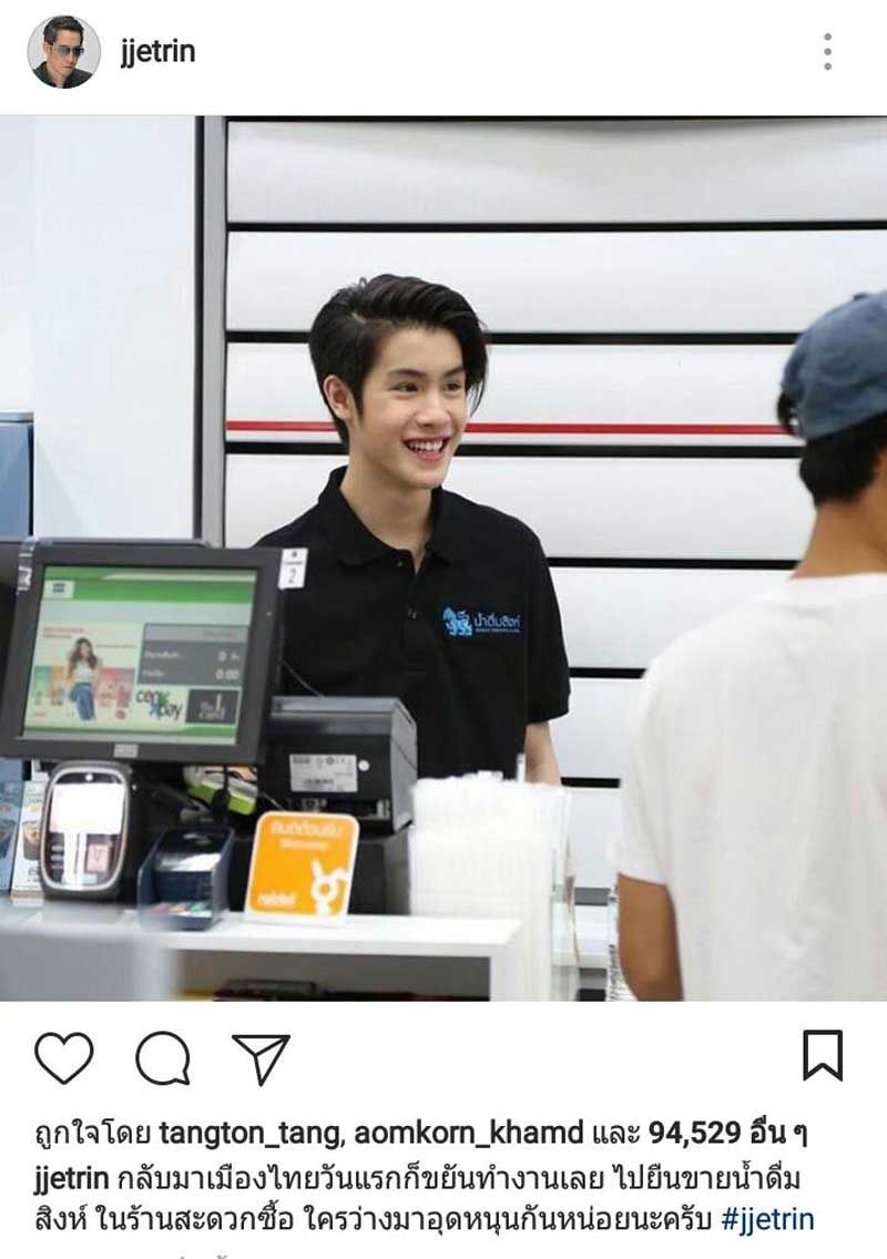 เช่นเดียวกับคุณพ่อเจ ก็ได้โพสต์ภาพลงอินสตาแกรมพร้อมระบุข้อความว่า “กลับมาเมืองไทยวันแรกก็ขยันทำงานเลย ไปยืนขายน้ำดื่มสิงห์ ในร้านสะดวกซื้อ ใครว่างมาอุดหนุนกันหน่อยนะครับ” ต้องบอกว่าทั้งหล่อทั้งขยันแบบนี้ ก็เอาใจสาวๆกันไปเลย รับรองว่าร้านสะดวกสาขานี้ร้านแตกแน่นอนเจ้าค่า ฮ่าๆๆๆ