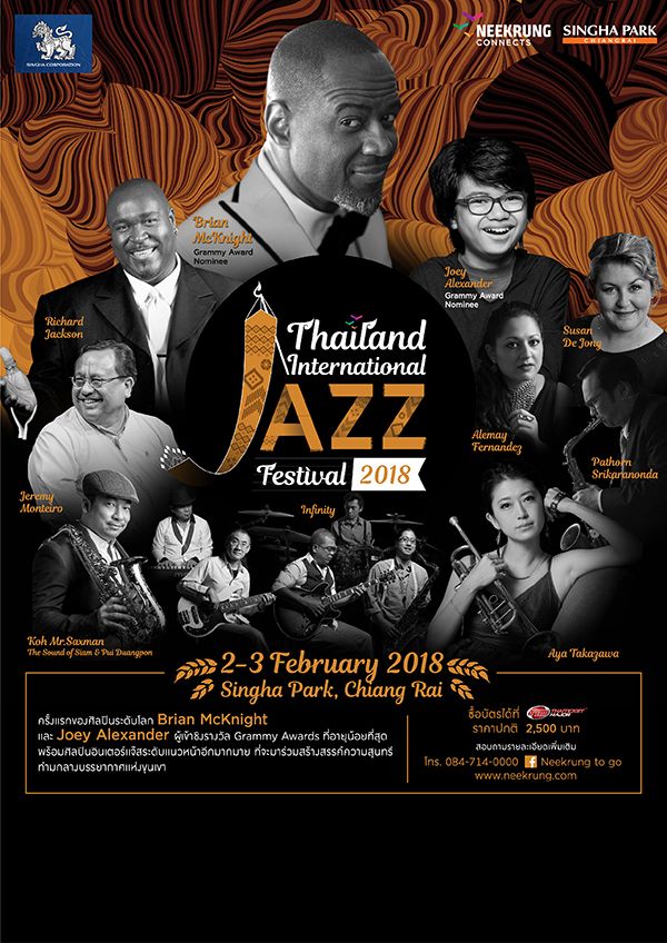 คอนเสิร์ต Thailand International Jazz Festival 2018 ในวันที่ 2-3 กุมภาพันธ์ 2561เริ่มจำหน่ายบัตรแล้ววันนี้ ที่ไทยทิคเก็ตเมเจอร์ทุกสาขา http://www.thaiticketmajor.com บัตรราคา 2,500 บาท สามารถดูคอนเสิร์ตได้ 2 วัน หรือ เชียงราย อี – ทิคเก็ท บัตรคอนเสิร์ตพร้อมการเดินทาง โทร : 053-752831, 053-753019-20 หรือติดตามรายละเอียดเพิ่มเติมได้ที่ www.neekrung.com