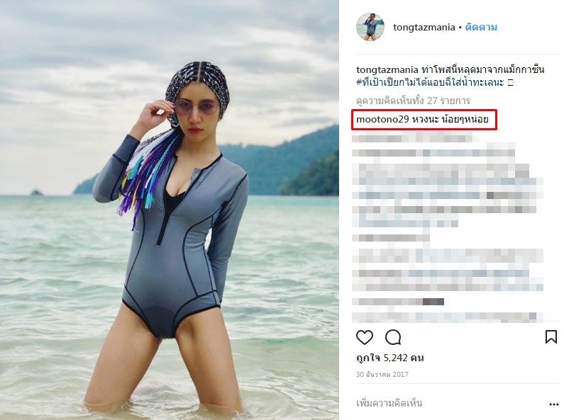 ถึงกับต้องออกโรงมาเตือนเองแบบนี้ เมื่อหนุ่ม “โตโน่ ภาคิน” มีน้องสาวสวยแซ่บ เป็นใครๆ ก็ต้องหวงเป็นธรรมดา อย่างน้อง “ต้องตา แสงรวี” น้องสาวของนักร้องหนุ่ม ที่นับวันก็ยิ่งเซ็กซี่ขึ้นเรื่อยๆ ล่าสุดเจ้าตัวยังเผยภาพความแซ่บในอินสตาแกรมส่วนตัวอย่างต่อเนื่อง และได้อัพภาพที่ไปเที่ยวทะเล โดยเจ้าตัวสวมชุดว่ายน้ำวันพีซรัวๆ งานนี้หนุ่มโตโน่ พี่ชายถึงกับต้องเข้ามาคอมเมนต์ว่า “หวงนะ น้อยๆหน่อย”
