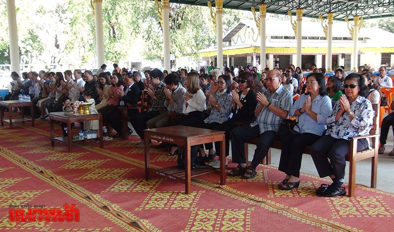 จากนั้นครอบครัวสหวงษ์ พร้อมด้วยโบว์ และน้องมะลิ ก็ได้เข้าไปจุดธูปไหว้อัฐิของปอ โดยรอบเจดีย์ได้มีการตกแต่งด้วยต้นปอแดง ที่ออกดอกบานสะพรั่ง และดอกไม้คล้ายสวนหย่อมขนาดย่อมอย่างสวยงาม รายล้อมด้วยภาพถ่ายของพระเอกหนุ่มในอิริยาบถต่างๆ ขณะที่ประชาชนและแฟนคลับที่มาร่วมงานทำบุญอุทิศส่วนกุศล ก็ได้นำดอกไม้ พวงมาลัย มากราบไหว้และถ่ายรูปกับเจดีย์ปอ อย่างต่อเนื่องด้วยเช่นกัน ซึ่งบรรยากาศก็เป็นไปด้วยความอบอุ่น