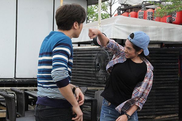 ฉากนี้ทีมงานใช้พื้นที่ร้านอาหาร Water Side ถนนเลียบด่วนรามอินทรา เป็นสถานที่ถ่ายทำ อาต้อย (จารึก สงวนพงษ์) ผู้กำกับฯ ขอซักซ้อมคิวบู๊ของพระนางทั้งคู่ โดยให้มีการซ้อมคิววิ่ง แล้วก็คิวต่อย ซึ่งทั้ง แม็ค และ เกรซ ก็ให้ความร่วมมือเป็นอย่างดี โดยเริ่มซ้อมด้วยการถ่ายทำมุมกล้องก่อน จากนั้นก็เป็นการถ่ายจริง ฉากนี้ทั้งแม็คและเกรซเล่นกันเต็มที่มาก แต่ก็ระมัดระวังไม่ให้หมัดของสาวเกรซโดนหน้าหนุ่มแม็ค โดยให้โดนแค่เฉียดๆ เท่านั้น!!!