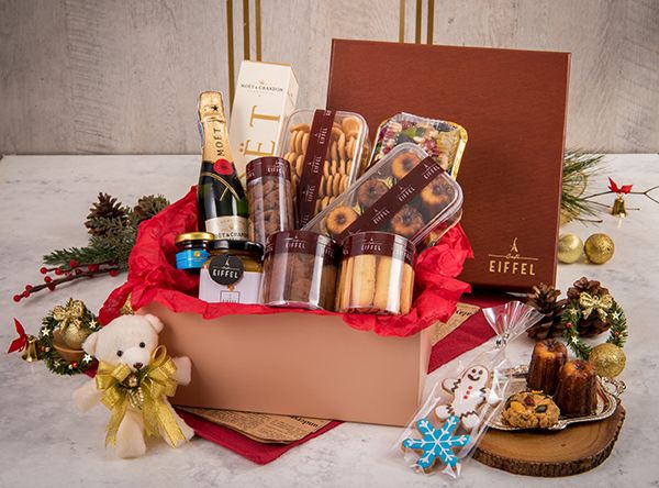 อีก 1 เซ็ตของขวัญที่เปี่ยมด้วยคุณค่ากับElegant Eiffel Box Set เต็มอิ่มกับผลิตภัณฑ์ที่คัดสรรมาเป็นพิเศษ โดยเฉพาะไข่คาเวียร์จากโครงการหลวง พร้อมแชมเปญระดับโลก มินิ โมเอท (Mini Moet) , คุกกี้กรุบกรอบ หอมเนยที่เรียกว่าปาล์มิเอร์ (Palmier), อัลมอน บองบอง (Almond Bonbon), คริสต์มาสฟรุ้ตเค้ก,ช็อกโกแลต ทรัฟเฟิล, ขนมสัญชาติฝรั่งเศสจากแคว้น บอโด คานาเล่ เดอ บอโด (Canale de Bordeaux) กรุบกรอบข้างนอก แต่ข้างในนิ่มรสชาติคล้ายคัสตาร์ด มีกลิ่นวนิลลาผสมรัมหอมๆ, แยมผลไม้โฮมเมดและคุ้กกี้อบกรอบรสชาติละมุนละลายในปาก (Langue de Chat)ทั้งหมดบรรจุอยู่ในกล่องสวยงาม พร้อมคุ้กกี้ คริสต์มาส และไอเฟล เทดดี้ แบร์ ที่มอบให้ฟรีเป็นพิเศษด้วย โดยเซ็ตนี้ราคาเพียง 4,200บาทนอกจากนี้ คุณยังสามารถเลือกสรรขนมที่โปรดปราน เพื่อจัดเป็นเซ็ตกล่องของขวัญสำหรับมอบให้คนพิเศษได้ตามความต้องการอีกด้วย (กรุณาสั่งล่วงหน้า 7 วัน)