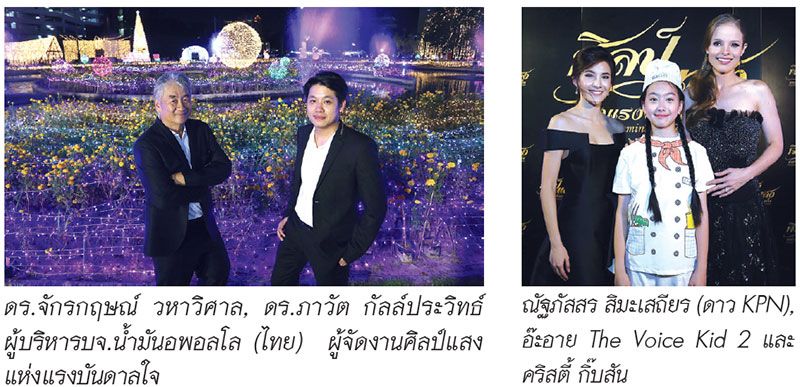 ด้าน มร.ยูอิจิ มัตซึยามะ ประธานบริษัท น้ำมันอพอลโล (ไทย) จำกัด กล่าวว่า “แรงบันดาลใจในการจัดงานนี้เกิดขึ้นจากเทศกาลไฟของประเทศญี่ปุ่นในทุกๆ ปี เมื่อเข้าฤดูหนาว แต่ละจังหวัดก็จะมีการจัดงาน Illumination ตามเมืองต่างๆ และมีผู้คนมากมายที่เข้ามาเยี่ยมชม กลายเป็นธรรมเนียมปฏิบัติอย่างหนึ่งของฤดูหนาวในประเทศญี่ปุ่น เราจึงมีความตั้งใจที่จะจัดงานเทศกาลไฟในประเทศไทยขึ้น ให้เป็นกิจกรรมเพื่อสังคม สร้างแหล่งท่องเที่ยวใจกลางเมือง เพื่อเป็นส่วนหนึ่งที่จะช่วยขับเคลื่อนการส่งเสริมอุตสาหกรรมการท่องเที่ยวของไทย ซึ่งเป็นกุญแจสำคัญในการกระตุ้นเศรษฐกิจไทยอีกด้วย อีกทั้งยังเป็นการปลูกฝังให้คนในองค์กรและประชาชนที่เข้ามาชมงาน ได้ร่วมแบ่งปันและร่วมทำบุญ ด้วยการบริจาคเพื่อการกุศล งานนี้เกิดจากความตั้งใจของบริษัท น้ำมันอพอลโล (ไทย) จำกัด ที่อยากจะส่งต่อความห่วงใยและช่วยเหลือสังคมอย่างแท้จริง”