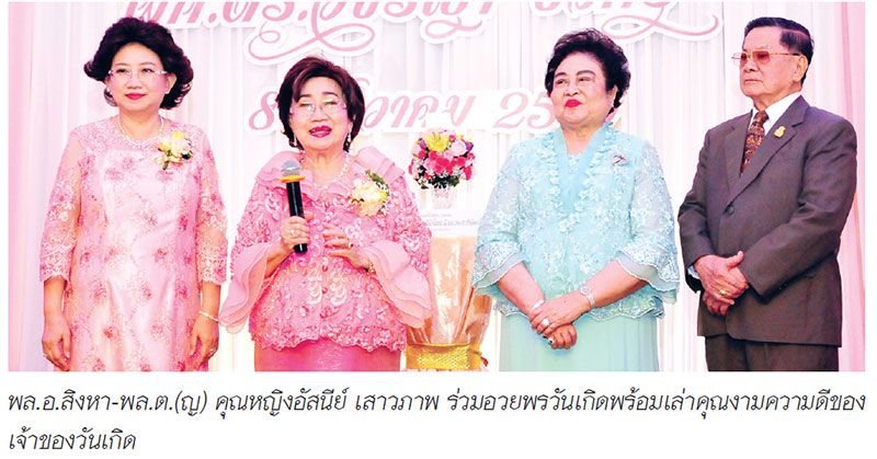 ฉลองสังสรรค์ในวาระครบรอบ 84 ปี ผศ.ดร.วชิรญา บัวศรี ที่ปรึกษาคณะกรรมการอำนวยการสภาสังคมสงเคราะห์แห่งประเทศไทยฯ เมื่อวันที่ 8 ธันวาคม ที่ผ่านมา แขกผู้มีเกียรติที่เคารพรักต่างทยอยเข้าร่วมอวยพรกันอย่างอบอุ่น อาทิ ประธานสภาสังคมสงเคราะห์แห่งประเทศไทยฯ พล.อ.สิงหา-พล.ต.(ญ) คุณหญิงอัสนีย์ เสาวภาพ ร่วมกล่าวอวยพรวันเกิด พร้อมด้วย คุณหญิงโรส บริบาลบุรีภัณฑ์ ประธานที่ปรึกษามูลนิธิเด็กโสสะแห่งประเทศไทย ในพระบรมราชินูปถัมภ์ รวมถึงบุตรสาวทั้ง 2 ผศ.ดร.วิรชฏา บัวศรี กับ ศศิภา-สหภพ โสมสุภามาศ และเครือญาติสนิท มิตรสหาย ร่วมกันร้องเพลงแฮปปี้เบิร์ธเดย์อวยพรมอบให้กับเจ้าของวันเกิด ณ ห้องดุสิตธานี ฮอลล์ โรงแรมดุสิตธานี ถนนพระราม 4