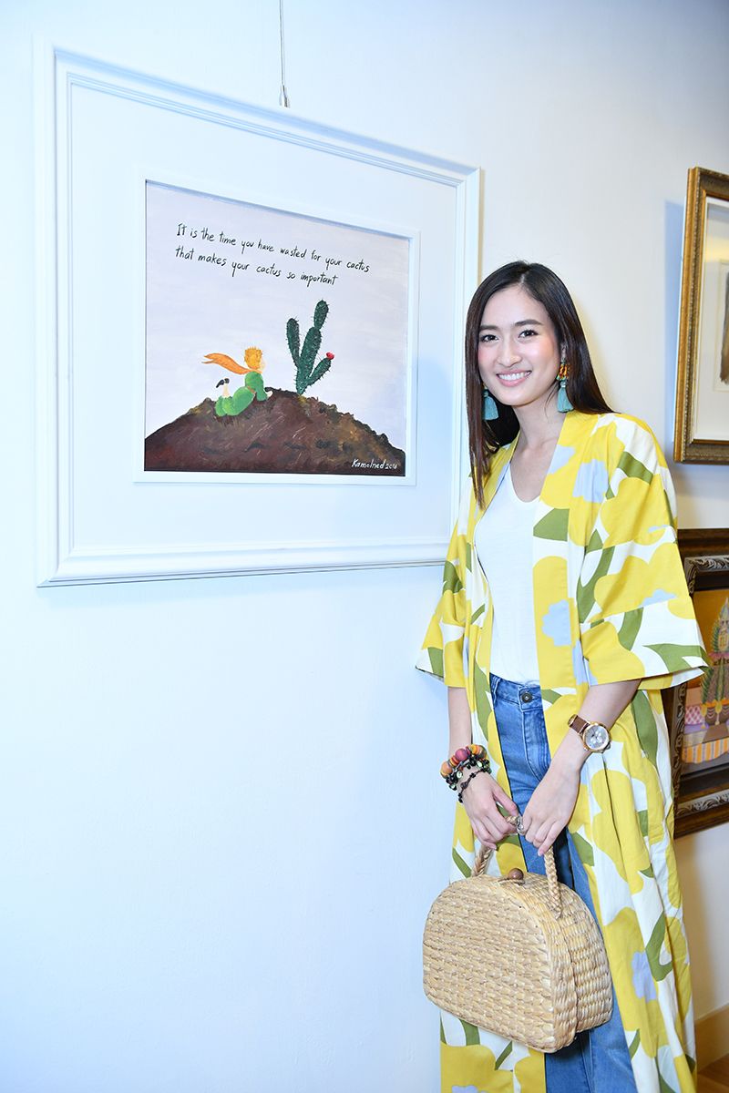 จากการเทรนกับ ครูเหมี่ยว-ปวันรัตน์ นาคสุริยะ เธอก็ใช้เวลาเพียง 1 วัน ภาพ“เจ้าชายน้อย” ที่วาดจากสีอะคริลิกบนผืนผ้าใบครั้งแรกในชีวิตของเธอก็เสร็จสมบูรณ์ “หนูเป็นคนชอบเจ้าชายน้อยมาก อ่านแล้วน้ำตาซึม ถ้าเกิดใครที่อ่านเจ้าชายน้อย จะรู้ว่าเค้ามีความรักให้กับดอกกุหลาบดอกเดียว เค้าจะเฝ้ารักเฝ้าทะนุถนอมดอกกุหลาบของเค้า แต่หนูเป็นเจ้าอายน้อย ที่ชอบต้นแคคตัส(กระบองเพชร) เพราะตัวเองเป็นคนชอบแคคตัสมาก ภาพนี้เลยเป็นเจ้าชายน้อยนั่งมองแคคตัสแทน หวังว่าจะขายได้นะคะ อายตั้งราคาไว้ 5,555 บาท ช่วยมาซื้อหน่อยนะคะ”