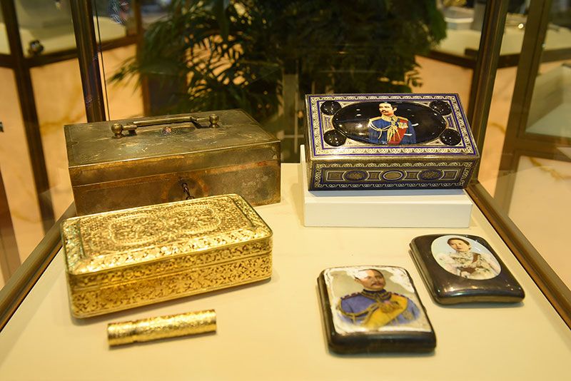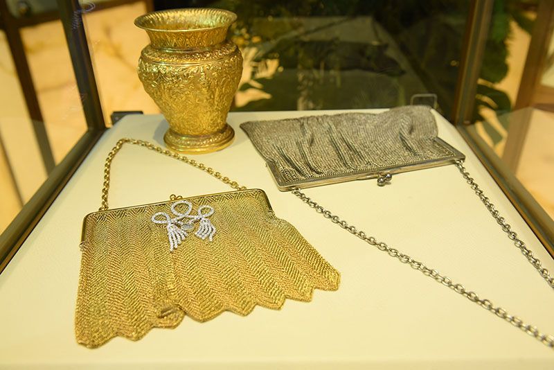 ถัดมาที่ เครื่องใช้ที่ทำจากทองคำและเงินในยุค ค.ศ.1800-1900 ได้แก่ กระโถนบ้วนน้ำหมากทรงปากแตรทองคำแท้ แกะดุนลายเทพพนมและลายเครือเถากนกเปลว รวมถึงกระเป๋าเงินแท้และทองคำแท้ที่ถักด้วยมืออย่างประณีต