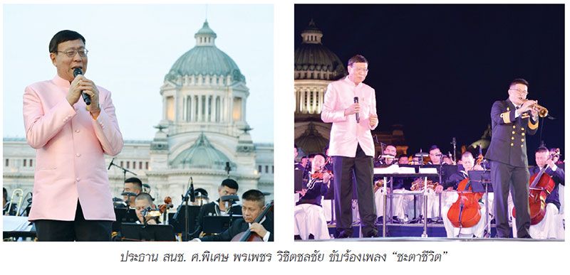 สมเด็จพระเจ้าอยู่หัวมหาวชิราลงกรณ บดินทรเทพยวรางกูร รัชกาลที่ 10 ทรงพระกรุณาโปรดเกล้าฯให้ สภานิติบัญญัติแห่งชาติ (สนช.) จัดการแสดงดนตรีเฉลิมพระเกียรติ “บทเพลงแห่งข้าวรพุทธเจ้า” เพื่อมอบความสุขแก่ประชาชน และน้อมรำลึกในพระมหากรุณาธิคุณของพระบาทสมเด็จพระปรมินทรมหาภูมิพลอดุลยเดช บรมนาถบพิตร เมื่อค่ำวันเสาร์ที่ 23 ธันวาคม 2560 ณ พระลานพระราชวังดุสิต โดยก่อนเริ่มงาน ศ.พิเศษ พรเพชร วิชิตชลชัย ประธานสภานิติบัญญัติแห่งชาติ (สนช.) พร้อมด้วย สุรชัย เลี้ยงบุญเลิศชัย รองประธานสภานิติบัญญัติแห่งชาติ (สนช.) นำคณะทำพิธีถวายสักการะพระบรมราชานุสาวรีย์พระบาทสมเด็จพระจุลจอมเกล้าเจ้าอยู่หัว รัชกาลที่ 5จากนั้น ศ.พิเศษ พรเพชร วิชิตชลชัย ประธานสภานิติบัญญัติแห่งชาติ (สนช.) เปิดกรวยดอกไม้ธูปเทียนแพถวายราชสักการะพระบรมฉายาลักษณ์ สมเด็จพระเจ้าอยู่หัวมหาวชิราลงกรณ บดินทรเทพยวรางกูร รัชกาลที่ 10