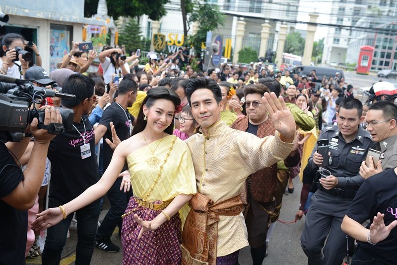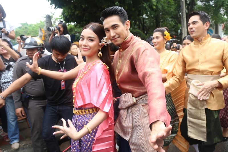 กลายเป็นละครแห่งประวัติศาสตร์วงการบันเทิง สำหรับ “บุพเพสันนิวาส” ของบอสใหญ่ “หน่อง-อรุโณชา ภาณุพันธุ์” ที่คว้าทั้งกระแส ทั้งเรตติ้ง จนกลายเป็นค่านิยมไปทั่วประเทศ แถมยังดังไกลไปถึงต่างประเทศ และในเมื่อ “บุพเพสันนิวาส” คว้าเรตติ้งสูงสุดหลังจากที่ทีวีเข้าสู่ยุคดิจิตอลมา งานนี้ “พี่หน่อง” จึงนำทีมนักแสดง “โป๊ป-ธนวรรธน์ , เบลล่า-ราณี , ปราง-กัญญ์ณรัณ , หลุยส์ สก็อต , ซูซี่-สุษิรา , ก็อต-จิรายุ , ปราบ-ปราปต์ปฏล , หยา-จรรยา , นุ่น-รมิดา จุ๊บแจง-วิมลพันธ์ , แอ๊ว-อำภา , เอิร์ธ-วิศววิท , โมสต์-วิศรุต ,เก่ง-ธชย , ซูริ-ซูซานน่า , บิ๊ก-ศรุต , เก่ง-ชาติชาย และ หนู-สุรศักดิ์” รำกลางยาว ณ บรอดคาซท์ ไทย เทเลวิชั่น ถนนเทียมร่วมมิตร เมื่อวันอาทิตย์ที่ 1 เมษายนที่ผ่านมา เวลา 10.30 น. เป็นระยะทางประมาณ 300 เมตร เพื่อถวายแก้สิ่งศักดิ์สิทธิ์ที่ทำให้ละครประสบความสำเร็จขนาดนี้ งานนี้เหล่าบรรดาแฟนคลับจึงขนทัพมาให้กำลังใจนักแสดงกันอย่างคับคั่ง