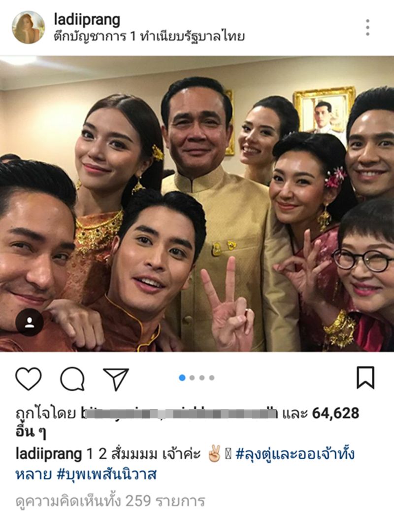 3 เม.ย.61 หลังจากคณะผู้จัดและดารานักแสดงนำจากละครดัง “บุพเพสันนิวาส” เข้าพบพล.อ.ประยุทธ์ จันทร์โอชา นายกรัฐมนตรี ที่ทำเนียบรัฐบาล เมื่อช่วงเช้าที่ผ่านมา เหล่านักแสดงชายหญิง ก็พร้อมใจกันถ่ายรูปคู่กับลุงตู่อย่างอบอุ่นใกล้ชิด