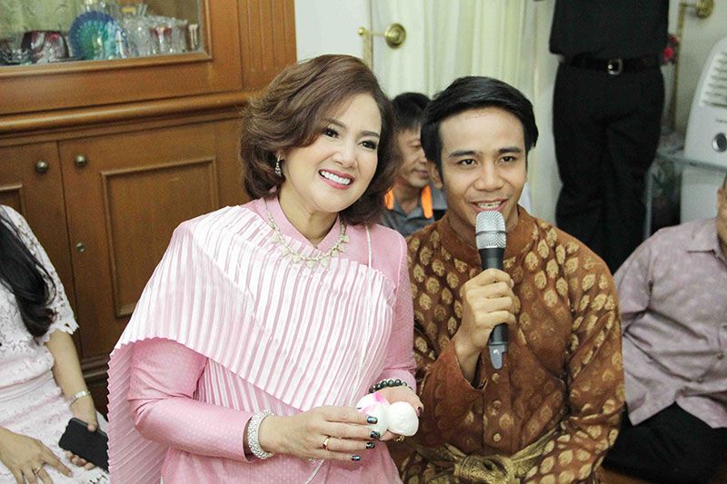 ‘คุณนำ้ผึ้ง’ นุ่งโจง ห่มสไบ ทำบุญวันเกิด